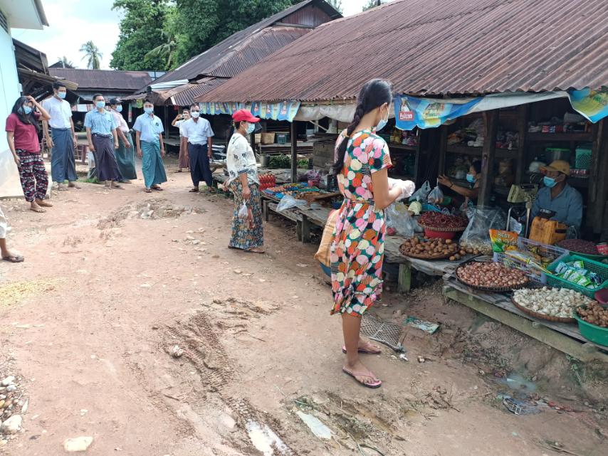 အဆိုပါ နှာခေါင်းစည်း တပ်ဆင်ရေး လှုပ်ရှားမူကို မြို့နယ်စီမံအုပ်ချုပ်ရေး အဖွဲ့ဝင်(၁)ဗိုလ်မှူး ရဲဝင်းထွန်းနှင့် အဖွဲ့ဝင်များ၊ မြို့နယ်အထွေထွေအုပ်ချုပ်ရေးဦးစီးဌာန ဒုတိယမြို့နယ် အုပ်ချုပ် ရေးမှူး ဦးထွန်းကိုကို၊ မြို့နယ်စည်ပင်သာယာရေးအမှုဆောင်အရာရှိ ဦးစံသိန်း၊ မြို့နယ် လျှပ်စစ်အင်ဂျင်နီယာဦးထူးကိုကိုနှင့် ဈေးကော်မတီဝင်များ၊ ရပ်ကွက်အုပ်ချုပ်ရေးမှူးများက ကိုဗစ်- ၁၉ ရောဂါ ကူးစက်မှုမဖြစ်ပွားစေရေးအတွက် နေအိမ်ပြင်ပသို့ ထွက်ခွာသူများ၊ ဈေးသွား၊ဈေးလာများ နေအိမ်အပြင်ထွက်ခွာပါက နှာခေါင်းစည်း မဖြစ်မနေတပ်ဆင်ရေး ကျန်းမာရေးနှင့် အားကစားဝန်ကြီးဌာနမှ ထုတ်ပြန်ထားသော ကိုဗစ်-၁၉ ကူးစက်ရောဂါဆိုင်ရာ ညွှန်ကြားချက်များအား တိကျစွာ လိုက်နာဆောင်ရွက်ကြရန် အသိပေးခဲ့ကြောင်း သိရသည်။
