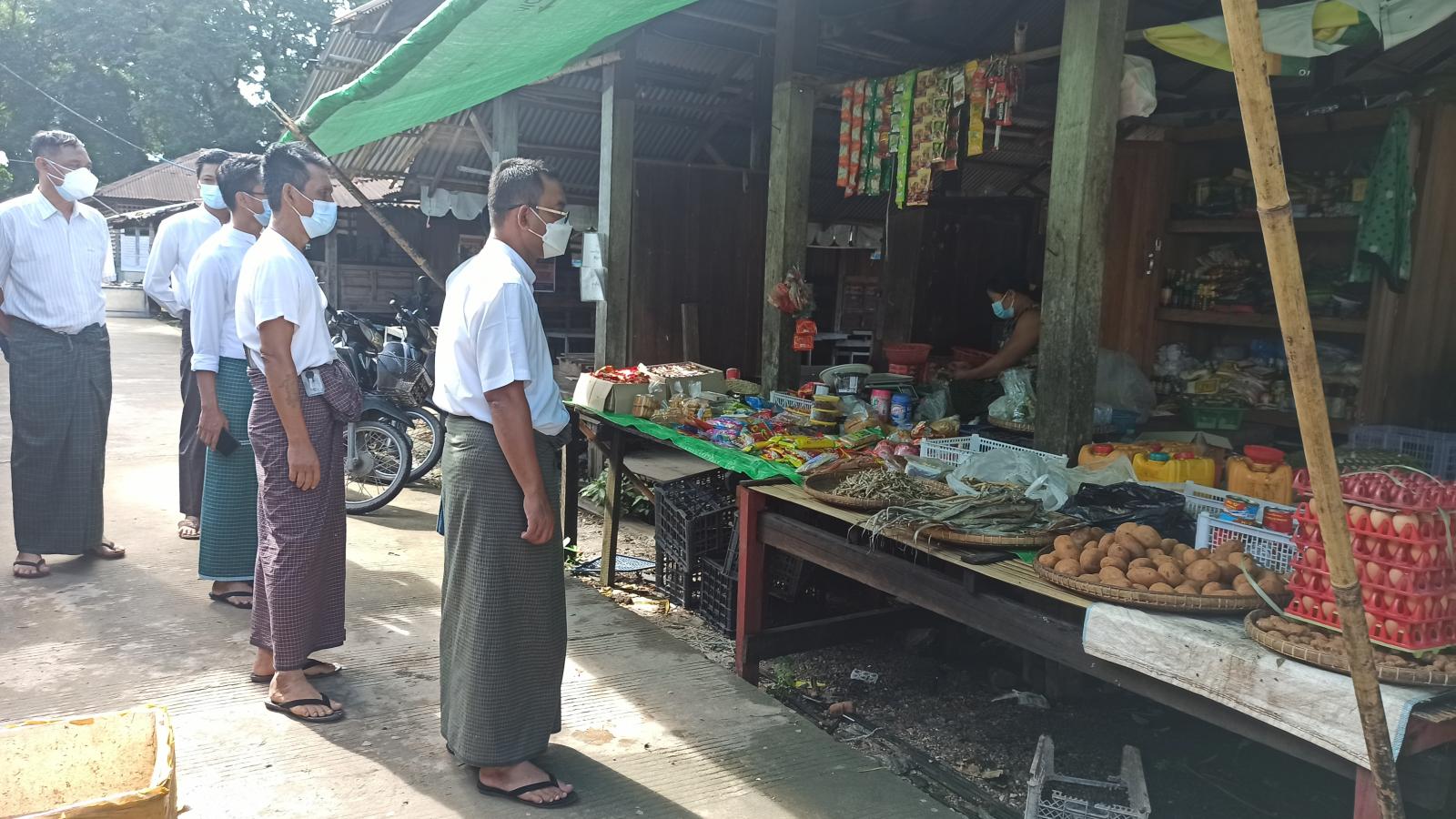 ပဲခူးတိုင်းဒေသကြီး တောင်ငူခရိုင် ထန်းတပင်မြို့နယ်၌ မြို့နယ်အတွင်း ကိုဗစ်-၁၉ ရောဂါ ကူးစက်ပျံ့နှံ့မှု မရှိစေရန် ရည်ရွယ်၍ ထန်းတပင်မြို့နယ် ကိုဗစ်-၁၉ ထိန်းချုပ်ရေးနှင့် အရေးပေါ် တုံ့ပြန်ရေးကော်မတီမှ မြို့မဈေးကြီးအတွင်း ရောင်းချလျက်ရှိသော ကုန်စိမ်း၊သား၊ငါးနှင့် ပျံကျ ဆိုင်များအားနှာခေါင်းစည်းများ တပ်ဆင်ရောင်းချနေမှုများကို ယနေ့နံနက် ၉ နာရီက ကြည့်ရှု စစ်ဆေးခဲ့သည်။