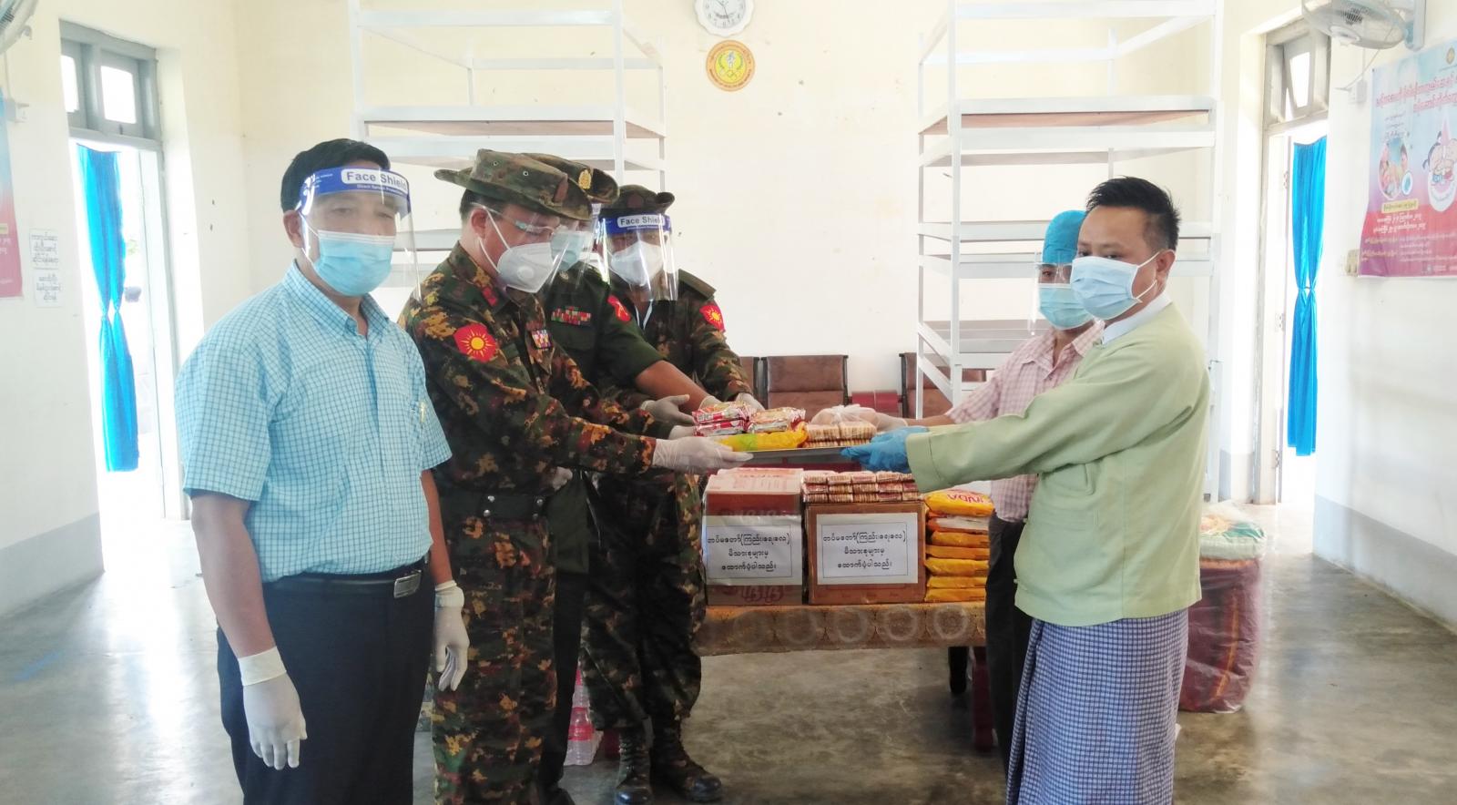 အမှတ်(၁)စစ်ဆင်ရေးကွပ်ကဲမှုဌာနချုပ်မှ တပ်မမှူး ဗိုလ်မှူးကြီးအောင်ကျော်က ထောက်ပံ့ ပေးအပ်ရခြင်း၏ ရည်ရွယ်ချက်ကို ရှင်းလင်းပြောကြားပြီး “ဝ”ကိုယ်ပိုင်အုပ်ချုပ်ခွင့်ရတိုင်းစီမံအုပ်ချုပ်ရေးအဖွဲ့ဥက္ကဋ္ဌ ဦးညီနပ်က ကျေးဇူးတင်စကားပြောကြားခဲ့သည်။ ထို့ နောက် တပ်မတော်(ကြည်း၊ရေ၊လေ)မိသားစုများက ထောက်ပံ့သည့် အစားအသောက်နှင့် အသုံးအဆောင်ပစ္စည်းများကို တပ်မမှူးဗိုလ်မှူးကြီးအောင်ကျော်က ပေးအပ်ရာ မြို့နယ် COVID-19 ရောဂါကာကွယ်ထိန်းချုပ်ကုသရေးကော်မတီမှ လက်ခံရယူခဲ့သည်။