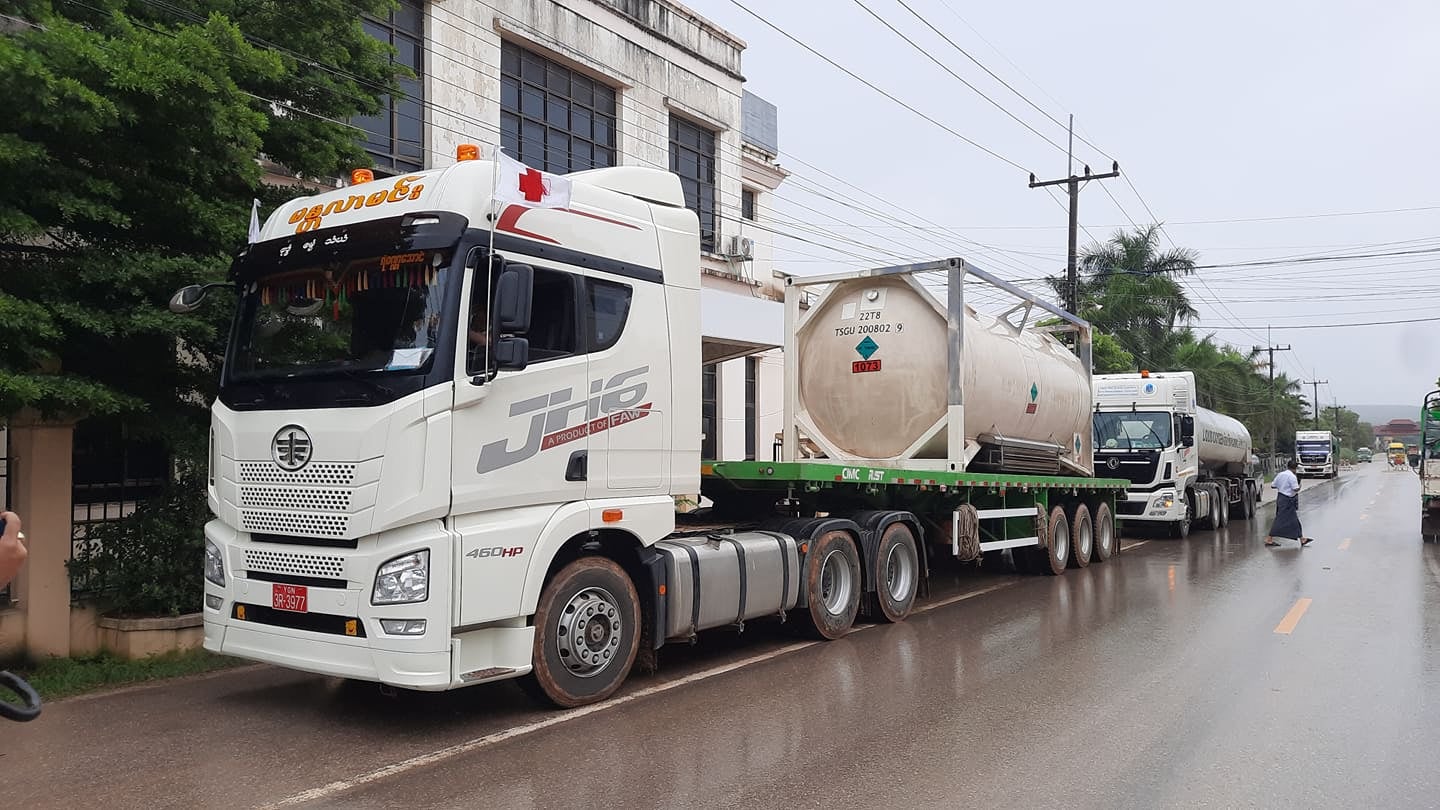 ကိုဗစ်-၁၉ ရောဂါကာကွယ် ထိန်းချုပ်ကုသရေးလုပ်ငန်းများတွင် အထောက်အကူဖြစ်စေရန်အတွက် အောက်ဆီဂျင် အပါအဝင် ကိုဗစ်အထောက်ကူပြုဆေးနှင့်ပစ္စည်းများ တင်သွင်းမှုကို မြဝတီနယ်စပ်မှ တစ်ဆင့် တင်သွင်းခွင့်ပြုပေးလျက်ရှိ ရာ ရန်ကုန်ပြည်သူ့ဆေးရုံကြီး နှင့် သင်္ဃန်းကျွန်းပြည်သူ့ဆေးရုံကြီးသို့ ပို့ဆောင်မည့် အောက်ဆီဂျင်အရည်များ သယ်ဆောင် လာသည့် မော်တော်ယာဉ် ၃ စီးတို့သည် ယနေ့ မြဝတီကုန်သွယ်ရေးဇုန်မှ ထွက်ခွာသွားကြောင်း သိရသည်။