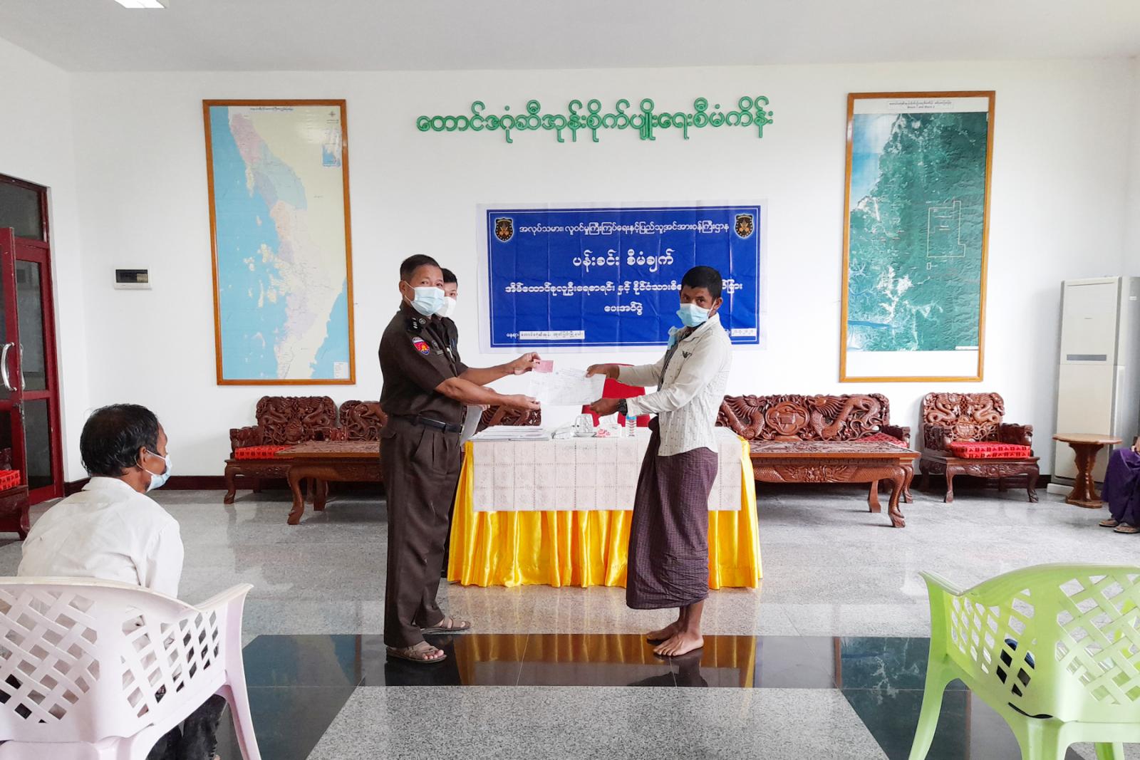 ထိုသို့ပန်းခင်းစီမံချက်ဖြင့် ထောင်ခမက်ကျေးရွာအုပ်စု တောင်ဒဂုံဆီအုန်းစိုက်ပျိုးရေးစီမံကိန်းရှိ ပြည်သူများအား အသက်(၁၀)နှစ်ပြည့် (၁၉)ဦး၊ အသက်(၁၈)နှစ်ပြည့် (၂၁၁)ဦး စုစုပေါင်း နိုင်ငံသား စိစစ်ရေးကတ်(၂၃၀ )ကတ် နှင့်အိမ်ထောင်စုလူဦးရေးစာရင်း (၂၀၁)စု တို့ကို ပြည်သူများလက်ဝယ် အရောက် တာဝန်ရှိသူများက အသီးသီးပေးအပ်ခဲ့ကြောင်းသိရသည်။