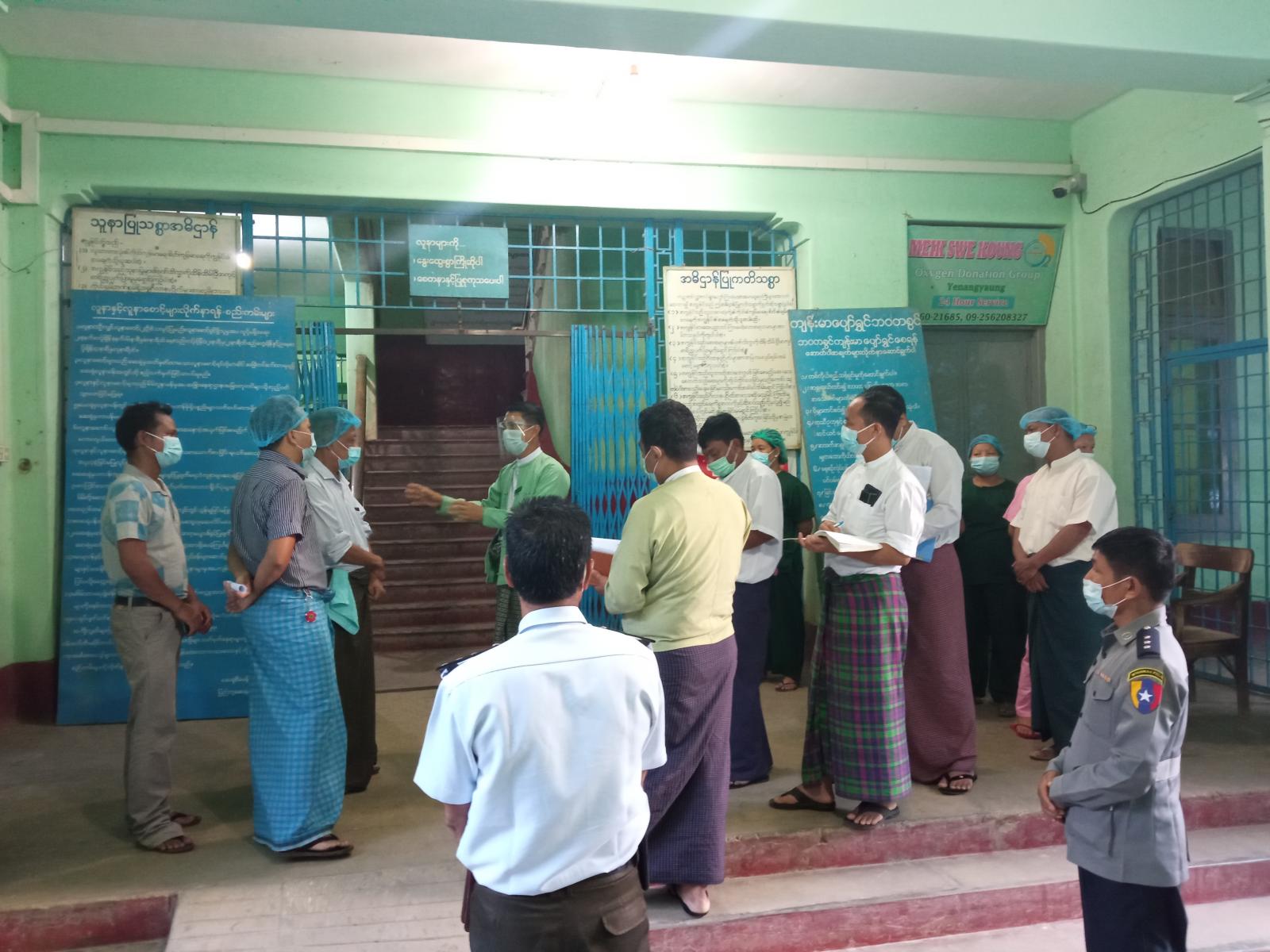 ထိုသို့ ကြည့်ရှု့စစ်ဆေးရာတွင် ခရိုင်စီမံအုပ်ချုပ်ရေးကောင်စီဥက္ကဋ္ဌသည် မြို့နယ်စီမံအုပ်ချုပ် ရေးအဖွဲ့ အဖွဲ့ဝင်များ၊ မြို့နယ် ကိုဗစ် - ၁၉ ထိန်းချုပ်နိုင်ရေးနှင့် အရေးပေါ်တုံ့ပြန်ရေး Call Center မှအဖွဲ့ဝင်များ Quarantine Centre များမှ စေတနာ့လုပ်အားပေးအဖွဲ့၊ မြို့နယ်ကြက်ခြေနီ တပ်ဖွဲ့ နှင့် မြို့နယ်အရံမီးသတ်အဖွဲ့များ နှင့် တွေ့ဆုံ၍ မြို့နယ်အတွင်း၌ ကိုဗစ်-၁၉ရောဂါ ကာကွယ်ထိန်းချုပ်ရေး အစီအမံများ ဆောင်ရွက်နေမှုအခြေအနေများနှင့် ပတ်သက်၍ တွေ့ဆုံ ဆွေးနွေးခဲ့ပြီး မြို့နယ်အုပ်ချုပ်ရေးမှူး ဦးရဲလင်းအောင်နှင့် တာဝန်ရှိသူများက ကိုဗစ်-၁၉ရောဂါ ပိုးတွေ့ရှိသူ လူနာများအား ရောဂါကုသပေးနေမှု အခြေအနေနှင့်ပတ်သက်၍ ရှင်းလင်းတင်ပြမှုအပေါ် လိုအပ်သည်များ ညှိနှိုင်းပေးခဲ့ကြောင်း သိရသည်။