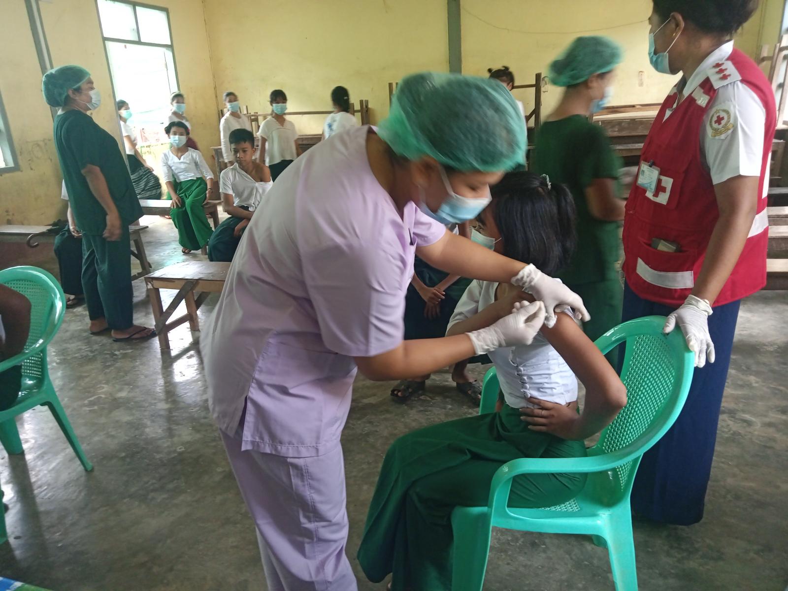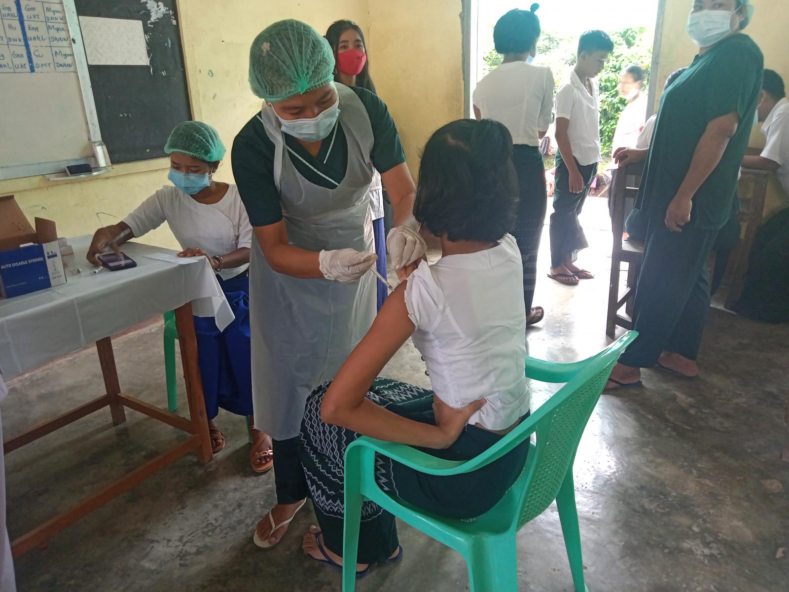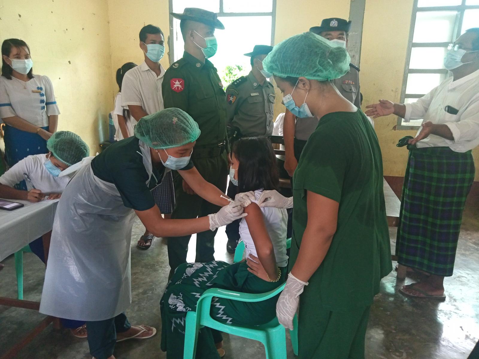 ရခိုင်ပြည်နယ်မြောက်ဦးခရိုင်၊ မြောက်ဦးမြို့နယ်အတွင်းရှိ မြို့ပေါ်ရပ်ကွက်များမှ အခြေခံပညာ အ-ထ-က(၁) ကျောင်းတွင် ပညာသင်ယူနေသော အလယ်တန်းအဆင့်နှင့် အထက်တန်းအဆင့် ကျောင်းသား/ကျောင်းသူများအား ကိုဗစ်-၁၉ ရောဂါကာကွယ်ဆေး ပထမအကြိမ်ထိုးနှံခြင်းအား ယနေ့ နံနက် ၈ နာရီအချိန်က မြို့နယ်အဆင့် ကိုဗစ်-၁၉ ရောဂါ ကာကွယ်ထိန်းချုပ်ရေးနှင့် အရေးပေါ်တုံ့ပြန်ရေးကော်မတီ၏ စီစဉ်ဆောင်ရွက်မှုဖြင့် မြို့နယ်ပြည်သူ့ကျန်းမာရေးဦးစီးဌာနမှ ကျန်းမာရေးဝန်ထမ်းများမှကိုဗစ်ကာကွယ်ဆေးများ ပထမအကြိမ်စတင်ထိုးနှံပေးလျက်ရှိကြောင်း သိရသည်။