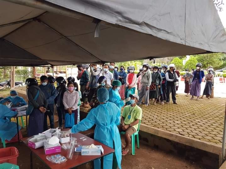 ရှမ်းပြည်နယ်(တောင်ပိုင်း)၊ ရပ်စောက်မြို့နယ်၊ ဗထူးကျန်းမာရေး စစ်ဆေးရေးဂိတ်တွင် ဖြတ်သန်းသွားလာကြသည့် ပြည်သူများအား ကိုဗစ်-၁၉ ရောဂါ ကူးစက်ခံရခြင်းရှိ/မရှိ (RDT) Test Kit ဖြင့် အခမဲ့ စစ်ဆေးပေးခြင်း ဆောင်ရွက်မှုကို ယမန်နေ့ နံနက်ပိုင်းက တာဝန်ရှိသူများက ဆောင်ရွက်ခဲ့ကြကြောင်း သိရသည်။
