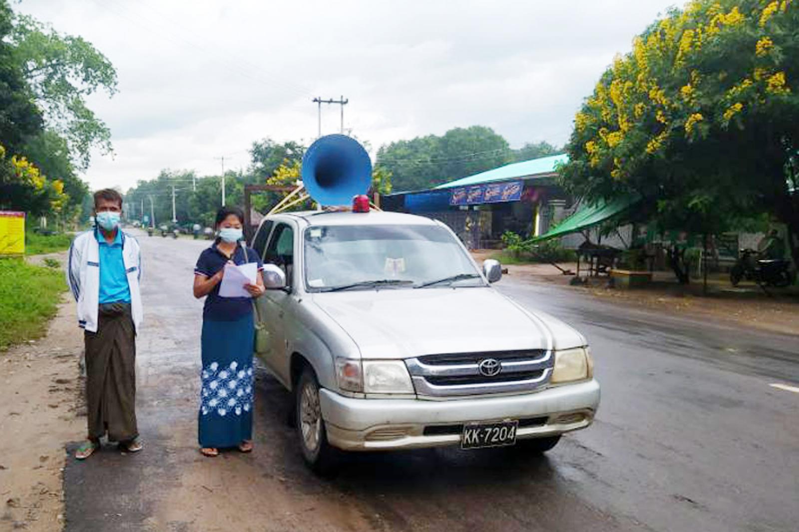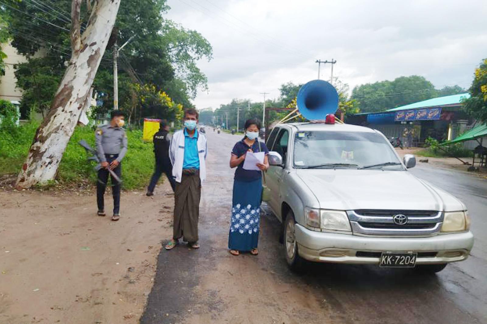 အဆိုပါ အသိပညာပေး နှိုးဆော်မှုလုပ်ငန်းများဆောင်ရွက်ရာတွင် မြို့နယ်စီမံအုပ်ချုပ်ရေးအဖွဲ့မှ မော်တော်ယာဉ် နှင့်အသံချဲ့စက်များ ပံ့ပိုးကူညီပြီး၊ မြို့နယ်ပြန်ကြားရေးနှင့်ပြည်သူ့ဆက်ဆံရေးဦးစီးဌာန မြို့နယ်ဦးစီးမှူး ဒေါ်မြင့်ကေခိုင်နှင့် ဝန်ထမ်းများက ပြည်သူများ မလိုအပ်ပဲ အိမ်အပြင်ထွက် သွား/လာ ခြင်းမပြုလုပ်ကြရန်၊ မဖြစ်မနေ အပြင်ထွက်ပါကလည်း နှာခေါင်းစည်း Mask ကို စနစ်တကျ တပ်ဆင် အသုံးပြုခြင်း၊ လူစုလူဝေးရှောင်ရှားခြင်းနှင့် တစ်ဦးနှင့်တစ်ဦး (၆)ပေအကွာမှ ပြောဆိုဆက်ဆံကြရန်၊ အိမ်ပြန်ရောက်တိုင်း(သို့မဟုတ်) တစ်ခုခု ကို ကိုင်တွယ်ပြီးတိုင်း လက်ကို ဆပ်ပြာဖြင့် မိနစ်(၂၀)ခန့် စနစ်တကျ ဆေးကြောကြရန်၊ တစ်ဦးနှင့် တစ်ဦး သတိပေးခြင်းနှင့် အသိပေးခြင်းများဆောင်ရွက်ရန်နှင့်၊ မိမိနှင့် မိမိပတ်ဝန်းကျင်တွင် ကိုဗစ်-၁၉ သံသယဖြစ်ဖွယ်လက္ခဏာတွေ့ရှိပါက နီးစပ်ရာ ကျန်းမာရေး ဌာနသို့ အမြန်ဆုံးအကြောင်း ကြားခြင်းနှင့် စစ်ဆေးကုသခြင်းများဆောင်ရွက်ကြရန် အသိပညာပေးပြီး၊ ယခုနိုင်ငံတော်မှ ကိုဗစ်-၁၉ ရောဂါ ကာကွယ်ဆေးများ အခမဲ့ ထိုးနှံပေးလျှက်ရှိရာ၊ အသက်(၁၂)ပြည့်ပြီး ကျောင်းသား/ကျောင်းသူများနှင့် အသက်(၁၈)နှစ်ပြည်ပြီး ရဟန်း/လူ ပုဂ္ဂိုလ် များအနေဖြင့် လူမှုဘဝ လုံခြုံရေးအတွက် ကာကွယ်ဆေးများ မဖြစ်မနေ သွားရောက်ထိုးနှံကြရန် အသိပေးနှိုးဆော်ခဲ့ကြကြောင်း သိရသည်။