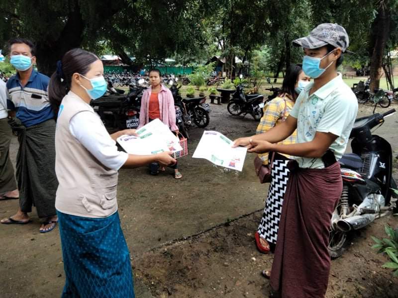အဆိုပါလက်ကမ်းစာစောင်တွင် ကိုဗစ်-၁၉ ရောဂါကာကွယ်ရေးအဓိကသတင်းစကား(၁၀) ချက် ၊ ၁၃.၉.၂၁ ရက်နေ့ထုတ်ကြေးမုံသတင်းစာမှ ကာကွယ်ဆေးများထိုးရန်လို အယ်ဒီတာ့ အာဘော် ကောက်နှုတ်ချက် ၊ ကိုဗစ်-၁၉ ရောဂါ၏ နောက်ဆက်တွဲဆိုးကျိုးများ ၊ ကူးစက်ရောဂါ နှိမ်နင်းရေး ဉပဒေဆိုတာဘာလဲ ၊ RDT Task Kid ဖြင့် အခမဲ့စစ်ဆေး နိုင်ကြောင်း သတင်းစကားများနှင့်မြို့နယ် အတွင်းကို.၁၉ရောဂါနှင့်ပတ်သက်၍ သိရှိလိုပါက ဆက်သွယ်မေးမြန်းနိုင်သည့် ဖုန်းနံပါတ်များ ပါဝင်ပြီး ၎င်းလက်ကမ်းစာစောင် ဖြန့်ဝေခြင်းကို မြို့နယ်ကိုဗစ်-၁၉ ရောဂါထိန်းချုပ်ရေးနှင့် အရေးပေါ် တုန့်ပြန်ရေး ကော်မတီဝင်များ ၊ လူမှုရေးအသင်းအဖွဲ့များ လူမှုရေးအသင်းအဖွဲ့ များမှ ပူးပေါင်း၍ စောင်ရေ ၄၀၀ ကျော်အခမဲ့ဖြန့်ဝေ ခဲ့ခြင်း ဖြစ်ကြောင်းသိရသည်။
