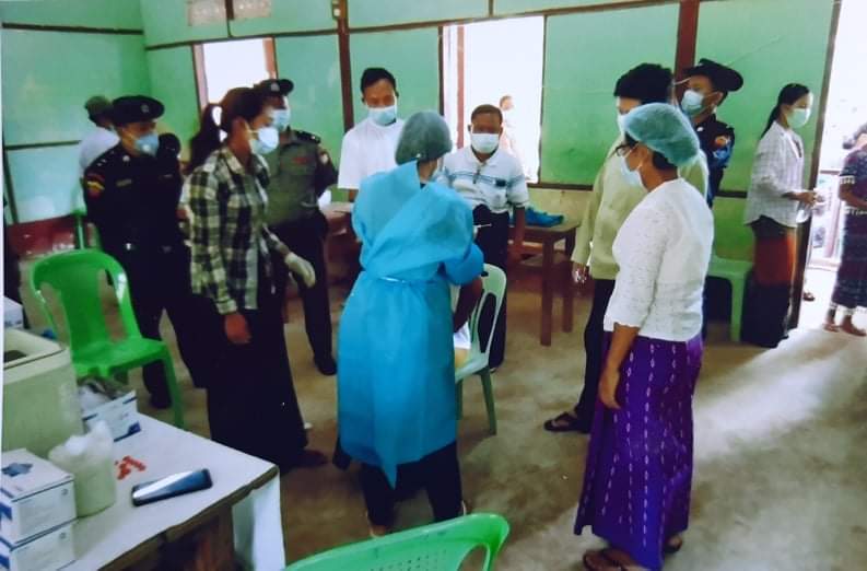 ကာကွယ်ဆေးထိုးနှံရာသို့ မြို့ကိုဗစ်-၁၉ရောဂါ ကာကွယ်ထိန်းချုပ် ကုသရေးကော်မတီ ဥက္ကဋ္ဌ ဦးရဲထွဋ်နိုင်၏ ကြီးကြပ်မှုဖြင့် မြို့နယ်အထွေထွေအုပ်ချုပ်ရေးဦးစီးဌာန ဒုတိယမြို့နယ် အုပ်ချုပ်ရေးမှူး ဦးကျော်ညွန့်ဝေနှင့် ဝန်ထမ်းများ၊ မြို့နယ်ရဲတပ်ဖွဲ့မှူး ရဲမှူး ပြည့်ဖြိုးအောင်၊ မြို့နယ်ကျန်းမာရေးနှင့် ကုသရေးဦးစီးဌာနမှူး ဒေါက်တာထင်ကျော်နှင့် ဝန်ထမ်းများ၊ မြို့နယ်ပညာရေးမှူး ဒေါ်နွဲ့နွဲ့သန်းနှင့် ပညာရေးဝန်ထမ်းများ၊ မြို့နယ်မီးသတ်တပ်ဖွဲ့နှင့် ရပ်ကွက်/ကျေးရွာ အုပ်ချုပ်ရေးမှူးများက အသက်(၁၂)နှစ်နှင့်အထက် ကျောင်းသား၊ ကျောင်းသူများအား ကိုဗစ်-၁၉ရောဂါ ကာကွယ်ရေး လမ်းညွှန်ချက်များနှင့်အညီ ကိုယ်အပူချိန် တိုင်းတာပေးခြင်း၊ သွေးပေါင်ချိန် တိုင်းတာပေးခြင်း၊ ဆေးထိုးနှံပေးခြင်းတို့ကို ဆောင်ရွက်ပေးကာ ဆေးထိုးနှံပြီးသူများအား ကျန်းမာရေး စောင့်ကြည့်ခြင်းများကို ပူးပေါင်းဆောင်ရွက်ခဲ့ကြသည်။