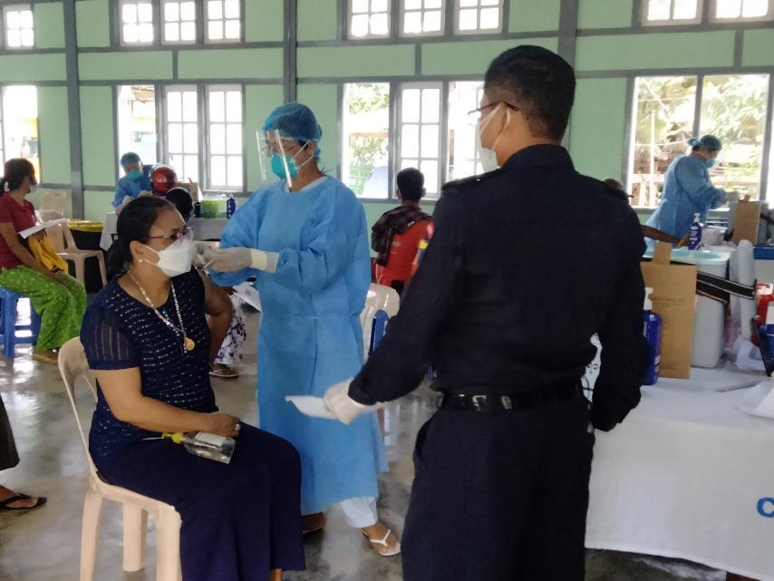 ထို့အတူ အသက်(၄၅)နှစ်မှ (၅၄)နှစ်အထိ အသက်အရွယ်ရှိသူများအား ကိုဗစ်-၁၉ရောဂါကာကွယ် ဆေးကို အောက်တိုဘာ(၁၇)ရက်မှ စတင်ထိုးနှံလျက်ရှိရာ ယမန်နေ့အထိ လူဦးရေ(၁၂၀၃)ဦး ထိုးနှံပေးခဲ့ကြောင်း သိရသည်။ အဆိုပါ ကာကွယ်ဆေးထိုးနှံသည့် ပြည်သူများအား ကိုဗစ်-၁၉ရောဂါ ကာကွယ်ဆေး လမ်းညွှန်ချက်များနှင့်အညီ သက်ဆိုင်ရာ ကျန်းမာရေးဝန်ထမ်းများနှင့် တာဝန်ရှိသူများက ဆောင်ရွက်ပေး ခဲ့ကြကြောင်း သိရသည်။