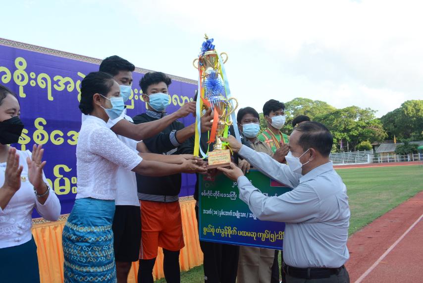 ယင်းနောက် ဆုချီးမြင့်ပွဲအခမ်းအနားကို ကျင်းပရာ တိုင်းဒေသကြီး တိုင်းရင်းသားရေးရာ ဝန်ကြီး ဦးစိုင်းနိုင်နိုင်ကျော်က အမျိုးသား/အမျိုးသမီး မီတာ(၁၀၀)ပြိုင်ပွဲများတွင် ဆုရရှိကြသော အားကစားသမား များအား ငွေသားဆုနှင့်ဆုတံဆိပ်များအားလည်းကောင်း၊ တိုင်းဒေသကြီး သယံဇာတရေးရာဝန်ကြီး ဦးတင်သန်းဝင်းက အမျိုးသား/အမျိုးသမီး မီတာ(၁၅၀၀)ပြိုင်ပွဲများတွင် ဆုရရှိကြသော အားကစားသမားများအား ငွေသားဆုနှင့်ဆုတံဆိပ်များအားလည်းကောင်း၊ တိုင်းဒေသကြီး စီးပွားရေးရာဝန်ကြီး ဒေါ်ရီရီသန်းက ပြိုင်ပွဲများတွင် စံချိန်သစ်တင်ခဲ့ကြသော အားကစားသမားများအား စံချိန်သစ်ဆုများအား အသီးသီးပေးအပ်ချီးမြှင့်ခဲ့ကြသည်။