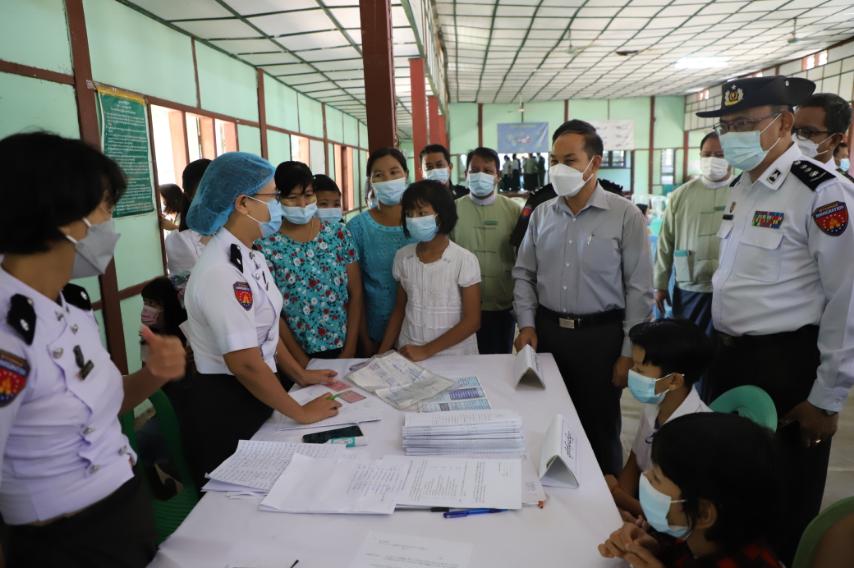 ဆက်လက်ပြီး တိုင်းဒေသကြီး ဝန်ကြီးချုပ် ဦးမြတ်ကျော်နှင့် တာဝန်ရှိသူများသည် အောက်တိုဘာလ (၁၉)ရက် နံနက်ပိုင်းတွင် အလုံမြို့၊ အမှတ်(၂)အခြေခံပညာ အထက်တန်းတွင် အသက်(၁၂)နှစ်အထက် ကျောင်းသား/ကျောင်းသူများအား ကျောင်းများပြန်လည်ဖွင့်လှစ်ချိန်တွင် ကိုဗစ်-၁၉ ရောဂါ ကူးစက်မှု မဖြစ်ပွားစေရေးအတွက် ကိုဗစ်-၁၉ ရောဂါကာကွယ်ဆေးများ ထိုးနှံပေးနေမှုနှင့် နိုင်ငံသားစိစစ်ရေး ကတ်ပြားများ မပြုလုပ်ရသေးသော ကျောင်းသား/ကျောင်းသူ (၆၀)ဦး တို့အား နိုင်ငံသားစိစစ်ရေး ကတ်ပြားများ ပြုလုပ်ပေးနေမှုအား လှည့်လည်ကြည့်ရှုအားပေးကာ လိုအပ်သည်များကို တာဝန်ရှိသူများနှင့် ဖြည့်ဆည်းပေါင်းစပ် ဆောင်ရွက်ပေးခဲ့ကြောင်း သတင်းရရှိသည်။