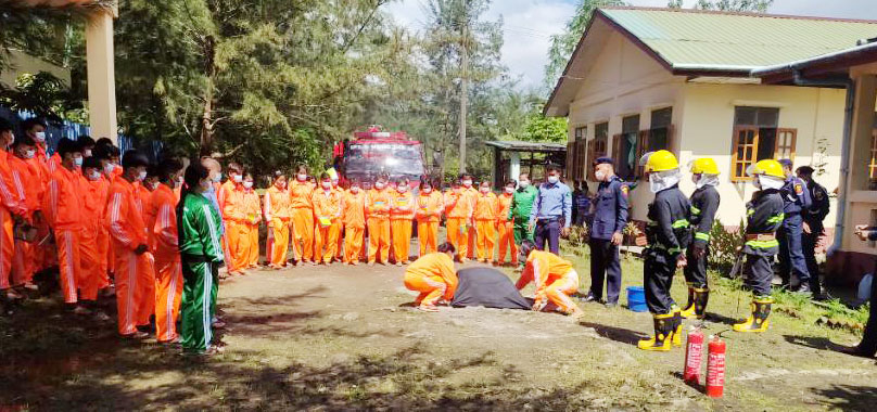 ထိုသို့ ဆောင်ရွက်ရာတွင် မြို့နယ်မီးသတ်ဦးစီးဌာနမှ မြို့နယ်မီးသတ်ဦးစီးမှူး ဦးစီးအရာရှိ ထွန်းရွှေခိုင် က မီး လောင်မှု ဖြစ်ပွားပါက မီးငြိမ်းသတ်ဆေးဘူးဖြင့် စနစ်တကျဖြင့် မီးငြိမ်းသတ်မှုများ၊ သဘာဝ ဘေးအန္တရာယ်ဆိုင်ရာ အသိပညာပေး ဟောပြောခြင်းများပြု လုပ်ခဲ့သည်။ ထို့နောက် မီးသတ်တပ်ဖွဲ့ဝင် များက ကျောင်းသား/ သူများအား ဘေးအန္တရာယ်များ ဖြစ်ပွားပါက လူနာများ ကူညီ ကယ်ဆယ်နိုင်ရေးအတွက် ကြိုးချည်နည်းများ၊ လူနာသယ်ဆောင်နည်းများ၊ မီးလောင်နေစဉ် မီးသတ်ဆေးဘူးနှင့် အဝတ်စဖြင့် မီးငြိမ်းသတ်နည်းများအား ကျောင်းသား/သူများ စနစ်တကျ အသုံးပြုမီးငြိမ်းသတ်တတ်စေရန် လက်တွေ့သရုပ်ပြသစေခြင်းများ ဆောင်ရွက်ခဲ့ကြသည်။