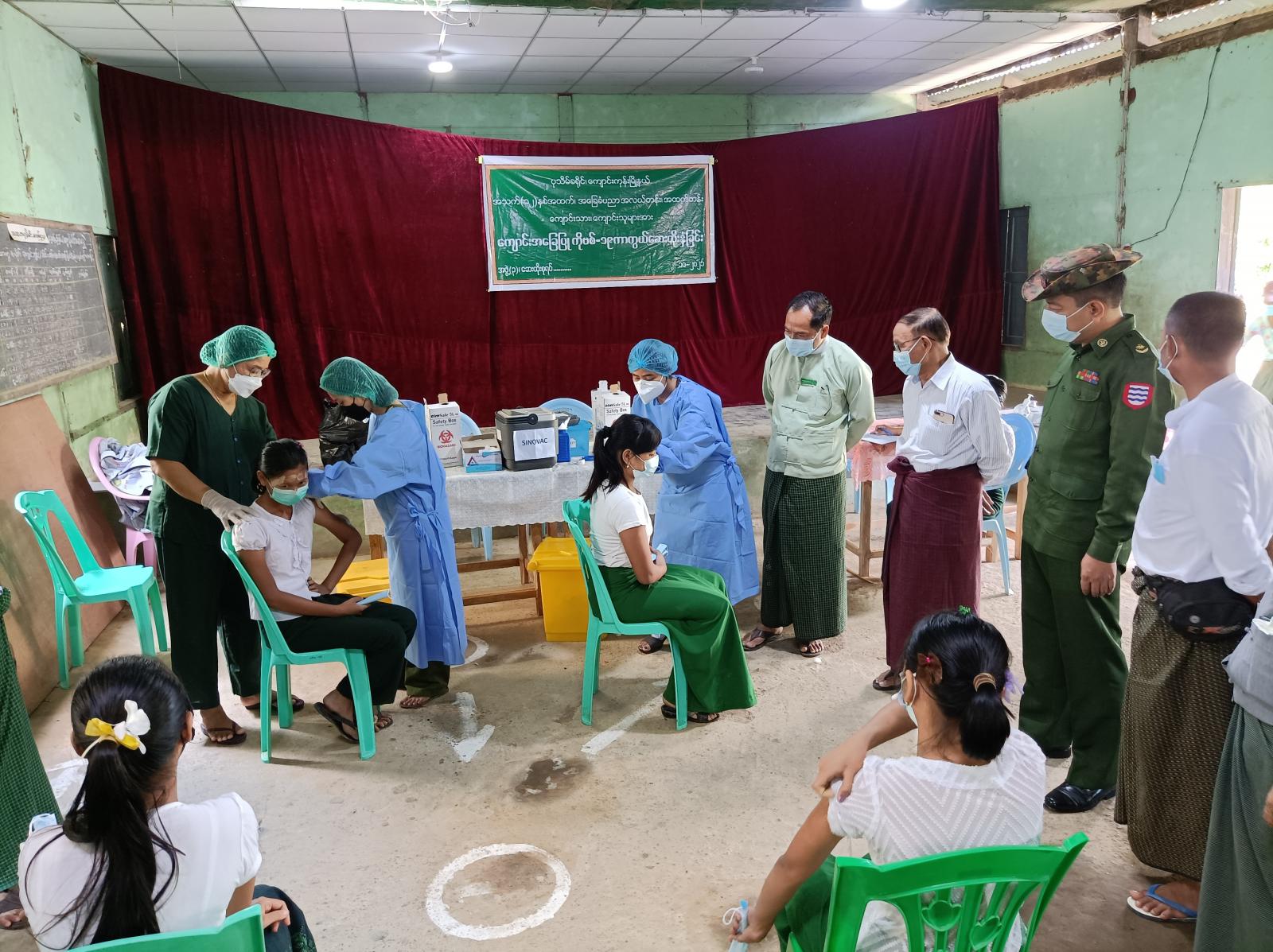 Grade 6 ကျောင်းသားကျောင်းသူ(၂၈၀)ဦးအား ကိုဗစ်-၁၉ ရောဂါ ကာကွယ်ဆေး ထိုးနှံပေးလျက် ရှိပြီး၊ လာမည့်အောက်တိုဘာလ ၂၁ ရက်နေ့တွင် ဆေးထိုးရန်ကျန်ရှိသူများအား ဆက်လက် ထိုးနှံပေးမည်ဖြစ်ကြောင်း သိရသည်။