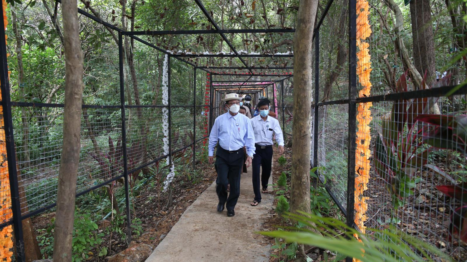 ယင်းနောက် ပြည်နယ်ဝန်ကြီးချုပ်နှင့်ဝန်ကြီးများသည် ဘားအံမြို့၊ အမှတ်(၄)ရပ်ကွက်ရှိ ဘားမဲတောင်အား သဘာဝဥယျာဉ်အဖြစ် အဆင့်မြင့်တင်ဆောင်ရွက်နေမှုအား သွားရောက်ကြည့်ရှုစစ်ဆေးရာ ပြည်နယ်စည်ပင်သာ ယာရေးအဖွဲ့ ညွှန်ကြားရေးမှူးသူရမြင့်သူ၊ ပြည်နယ်သစ်တောဦးစီးဌာနညွှန်ကြားရေးမှူးဦးပြည့်စုံမျိုးနှင့်တာဝန်ရှိသူ များက လုပ်ငန်းဆောင်ရွက်မှုများနှင့်စပ်လျဉ်း၍ ရှင်းလင်းတင်ပြခဲ့ကြပြီး ပြည်နယ်ဝန်ကြီးချုပ်က လိုအပ်သည်များ လမ်းညွှန်မှာကြားကာ ဘားမဲတောင်သဘာဝဥယျာဉ်တွင် သဘာဝအလျောက် ပေါက်ရောက်နေသည့် အပင်အမျိုး အစားများ၊ နားနေဆောင်၊ View Point ၊ တောင်ပတ်လူသွားကွန်ကရစ်လျှောက်လမ်းများ၊ အများသုံးသန့်စင်ခန်း များနှင့် အုတ်ရေမြောင်းများ ဆောင်ရွက်ပြီးစီးမှု၊ ကလေးကစားကွင်းနှင့်ယာဉ်ရပ်နားရာနေရာတည်ဆောက်မည့် မြေနေရာတို့ကို လှည်လည်ကြည့်ရှုစစ်ဆေးခဲ့ကြကြောင်း သတင်းရရှိသည်။
