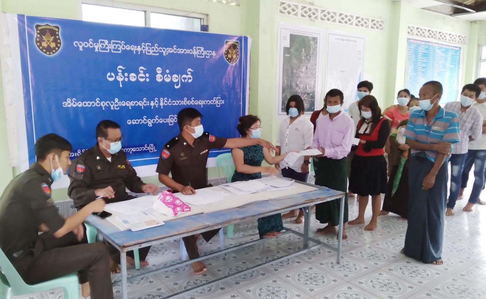 နိုင်ငံတစ်ဝှမ်း အသက် ၁၈ နှစ်အထက် နိုင်ငံသားစိစစ်ရေး ကတ် မရှိသေးသော ပြည်သူများကို ပန်းခင်း စီမံချက်ဖြင့် (၁၈) လကြာ အချိန်ယူကာ ဆောင်ရွက် ပေးလျှက်ရှိရာ ကော့သောင်းမြို့နယ်အနေဖြင့် ရပ်ကွက်ကျေးရွာများအတွင်း ကိုဗစ်-၁၉ ရောဂါ ထိန်းချုပ်ရေး စည်းကမ်းချက်များနှင့်အညီ ကွင်းဆင်းဆောင်ရွက်ပေးလျက်ရှိကြောင်း မြို့နယ်လူဝင်မှု ကြီးကြပ်ရေးနှင့် ပြည်သူ့အင်အားဆိုင်ရာ ဦးစီးဌာနရုံးမှ သိရသည်။