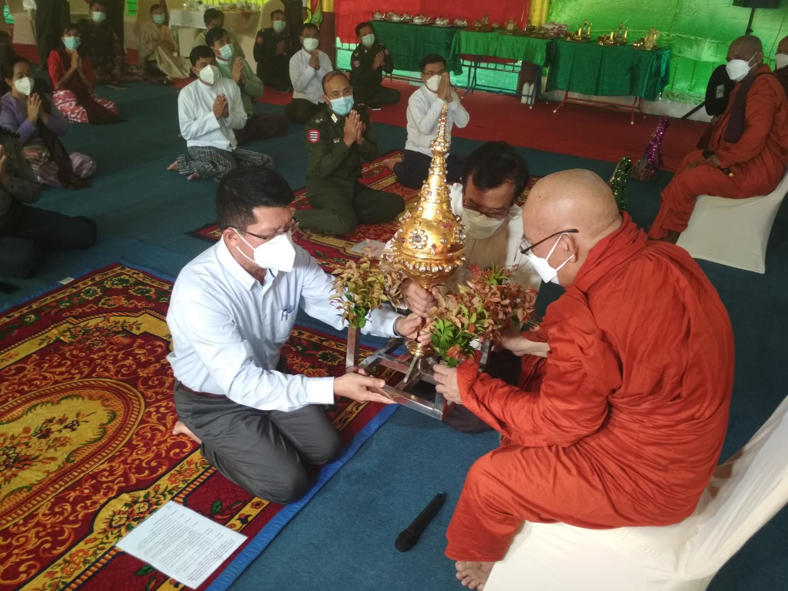 အခမ်းအနားကို နမောတဿ (၃)ကြိမ်ရွတ်ဆို ဘုရား ကန်တော့ ၍ ဖွင့်လှစ်ပေးခဲ့ပြီး နိင်ငံတော်သံဃာနာယကအဖွဲ့ ဘဒ္ဒန္တပညာဓဇ (အဂ္ဂမဟာသဒ္ဓမ္မဇောတိကဓဇ) ပုစွန်တောင် သာယာကုန်း ကျွန်းပြဿကျောင်းဆရာတော်ထံမှ ငါးပါးသီလ ခံယူဆောက်တည်ကြပြီး ဆရာတော် အရှင်သူမြတ်များကလည်း ပရိတ်တရားတော်များ ရွတ်ဖတ်ပူဇော်ခဲ့ကြသည်။