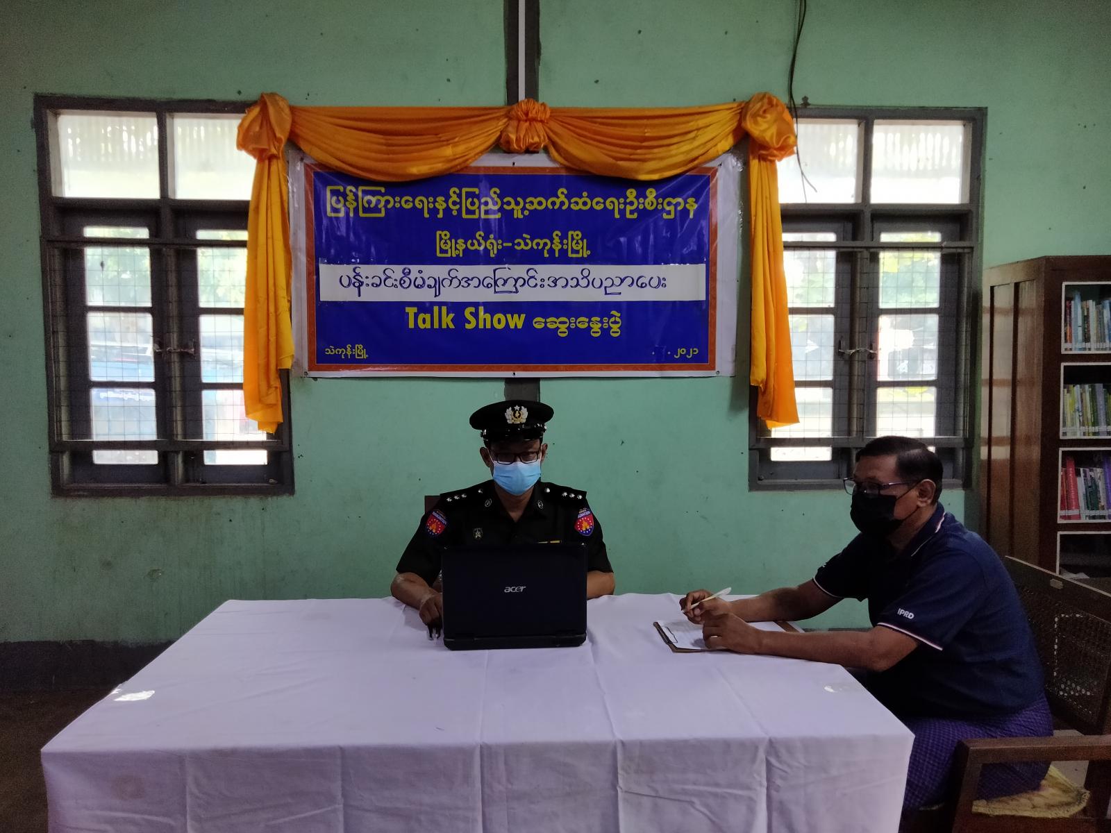 အဆိုပါ ပန်းခင်းစီမံချက် အသိပညာပေး Talk Show ဆွေးနွေးပွဲတွင် ပန်းခင်းစီမံချက်အကြောင်း သိကောင်းစရာများနှင့် ပတ်သက်၍ လူဝင်မှုကြီးကြပ်ရေးနှင့် ပြည်သူ့အင်အားဆိုင်ရာ မြို့နယ်ဦးစီး မှူးရုံးမှ မြို့နယ်ဦးစီးမှူး ဦးဝင်းထွဋ်နှင့် ပြန်ကြားရေးနှင့် ပြည်သူ့ဆက်ဆံရေးဦးစီးဌာန မြို့နယ်ဦးစီးမှူး ဦးနိုင်လင်းတို့က ပန်းခင်းစီမံချက်ဟု အမည်ပေးရသည့် ရည်ရွယ်ချက်၊ ပြည်သူများ ကိုင်ဆောင်သင့်သည့် ကတ်ပြားတစ်မျိုးမျိုးရရှိရေး၊ အိမ်ထောင်စုလူဦးရေ စာရင်းနှင့် နိုင်ငံသားစိစစ်ရေးကတ်ပြားများကို မြို့နယ်ရုံးဝန်ထမ်းများက ရပ်ကွက်/ကျေးရွာများသို့ ကွင်းဆင်းဆောင်ရွက်ပေးနေမှု အခြေအနေများ အကြောင်း၊ ပြည်သူများ လာရောက်လျှောက်ထားရာတွင် လိုအပ်သည့် စာရွက်စာတမ်း အထောက် အထားများ၊ နိုင်ငံသားစိစစ်ရေးကတ်ပြားများ ဆောင်ရွက်ပေးရာတွင် အသက်အရွယ် ကန့်သတ်ချက် များနှင့် လူမှုဘဝပြည့်စုံဖို့ နိုင်ငံသားကတ်ကိုင်ကြစို့ ဆောင်ပုဒ်အတိုင်း ပန်းခင်းစီမံချက်ဖြင့် နိုင်ငံသား စိစစ်ရေးကတ်ပြားများ ဆောင်ရွက်ပေးနေမှုကို ပြည်သူများ ကျယ်ကျယ်ပြန့်ပြန့် သိရှိစေရန်အတွက် ဆွေးနွေးခဲ့ကြောင်း သိရသည်။