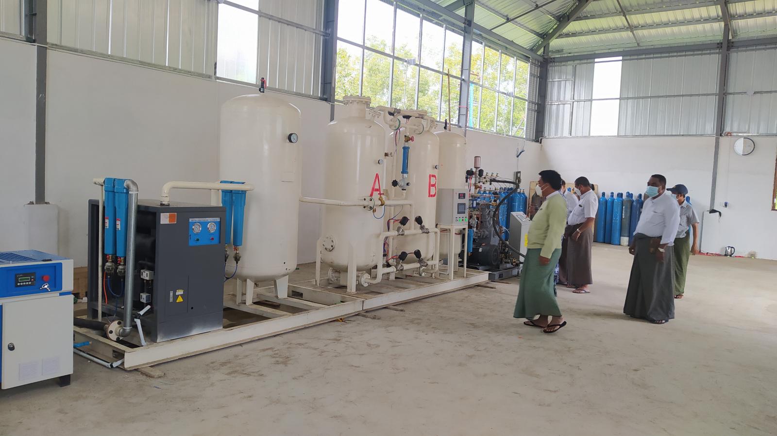အဆိုပါ အောက်ဆီဂျင် စမ်းသပ်ထုတ်လုပ်မှုအား မြို့နယ်စီမံအုပ်ချုပ်ရေးအဖွဲ့ ဦးသိန်းဇော်ဦးနှင့် အဖွဲ့ဝင်များမှ ကြည့်ရှုအားပေးခဲ့ပြီး စမ်းသပ်ထုတ်လုပ်သည့် ကာလအတွင်း တစ်နာရီလျှင် (၄၀)လီတာအိုး(၁၀)လုံး ထုတ်လုပ်နိုင်ကြောင်း သိရသည်။