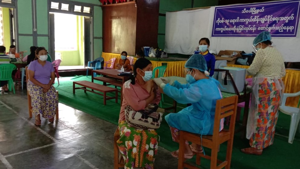 ရှမ်းပြည်နယ် ( မြောက်ပိုင်း) ၊ ကျောက်မဲခရိုင် ၊ သီပေါမြို့နယ်မြို့တော်ခန်းမ စုရပ်နေရာတွင် ကိုဗစ်-၁၉ ရောဂါကာကွယ်ဆေး ထိုးနှံရန်ကျန်ရှိနေသော အသက်(၁၈)နှစ်နှင့် အထက်ပြည်သူများအား ကိုဗစ်-၁၉ ရောဂါကာကွယ်ဆေး (Sinopharm) တတိယအသုတ်(ပထမအကြိမ်) ထိုးနှံပေးလျက်ရှိရာ ယနေ့ နံနက်ပိုင်းတွင်လည်း ဆက်လက်ထိုးနှံပေးလျက်ရှိကြောင်းသိရသည်။