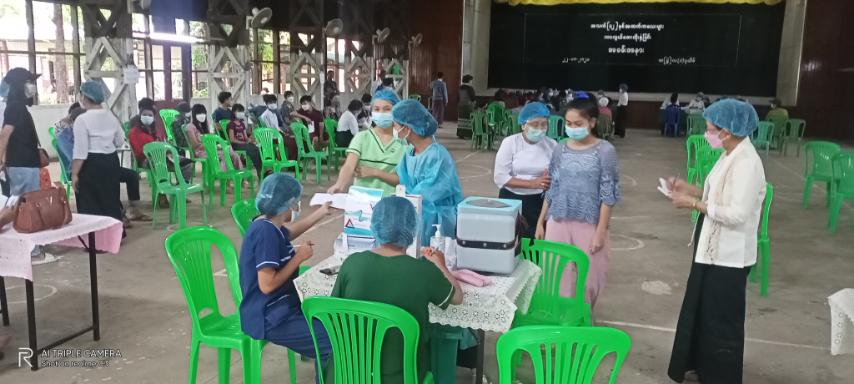 ကျောင်းအမှန်တကယ် တက်ရောက်မည့် ကျောင်းသူ/ကျောင်းသားများတွင် ကိုဗစ်-၁၉ ရောဂါ ကူးစက်မှု မရှိစေရန်နှင့် ဘေးကင်းစိတ်ချစွာ ပညာသင်ကြားနိုင်ရေး၊ ကာကွယ်ဆေးထိုးနှံခြင်းကို နိုင်ငံတော်အစိုးရ၏ ညွှန်ကြားမှုဖြင့် တာဝန်ရှိသူများက ဆောင်ရွက်လျက်ရှိကြရာ ဆေးထိုးအဖွဲ့တစ်ဖွဲ့လျှင် ဆေးထိုးနှံရေးအဖွဲ့ ခေါင်းဆောင်၊ ကျန်းမာရေးစစ်ဆေးသူ၊ ဆေးပြင်ပေးသူနှင့် ဆေးထိုးနှံမည့်သူဟူ၍ ၄ ဦး စုဖွဲ့ထားရှိကာ ဆေးထိုးမည့်နေရာ ပတ်ဝန်းကျင်လုံခြုံရေး ၊ နေရာချထားမှုအား တပ်မတော်၊ ရဲတပ်ဖွဲ့နှင့် ပညာရေးဝန်ထမ်း များ၊ မီးသတ်တပ်ဖွဲ့တို့မှ တာဝန်ယူဆောင်ရွက်လျက်ရှိပြီး တာဝန်ကျဌာနဆိုင်ရာ ဝန်ထမ်းများနှင့် မြို့နယ် ပညာရေးမှူးတို့ လာရောက်ကြီးကြပ် ဆောင်ရွက်လျက်ရှိကြောင်းသိရသည်။