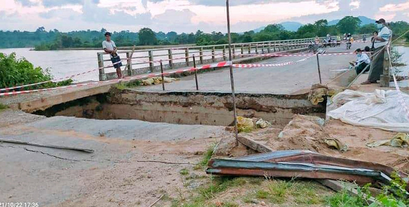 ကချင်ပြည်နယ် မိုးညှင်းခရိုင် ဖားကန့်မြို့နယ် ကာမိုင်းမြို့၌ အထက်ဘက်မှမိုးများ သည်းထန်စွာ ရွာသွန်းမှုကြောင့် ယမန်နေ့နံနက် (၁၁) နာရီခန့်တွင် ကာမိုင်း-လဝါးသွား ကားလမ်းမပေါ်ရှိ ပေ(၉၀၀) တံတား အစပ်အောက်ခြေအား ရေများတိုက်စားသွားသဖြင့် တံတားချဉ်းကပ်ကားလမ်း ပျက်ကျခဲ့ ကြောင်း သိရသည်။