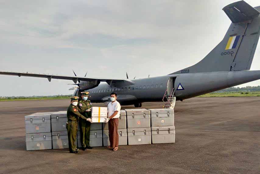 ရခိုင်ပြည်နယ်အတွင်းရှိ စစ်တွေမြို့နှင့် သံတွဲမြို့များသို့ ကိုဗစ်-၁၉ ရောဂါကာကွယ်ဆေးများကို ယမန်နေ့ ညနေပိုင်းက တပ်မတော်လေယာဉ်ဖြင့် သယ်ယူရောက်ရှိလာကြောင်း သိရသည်။