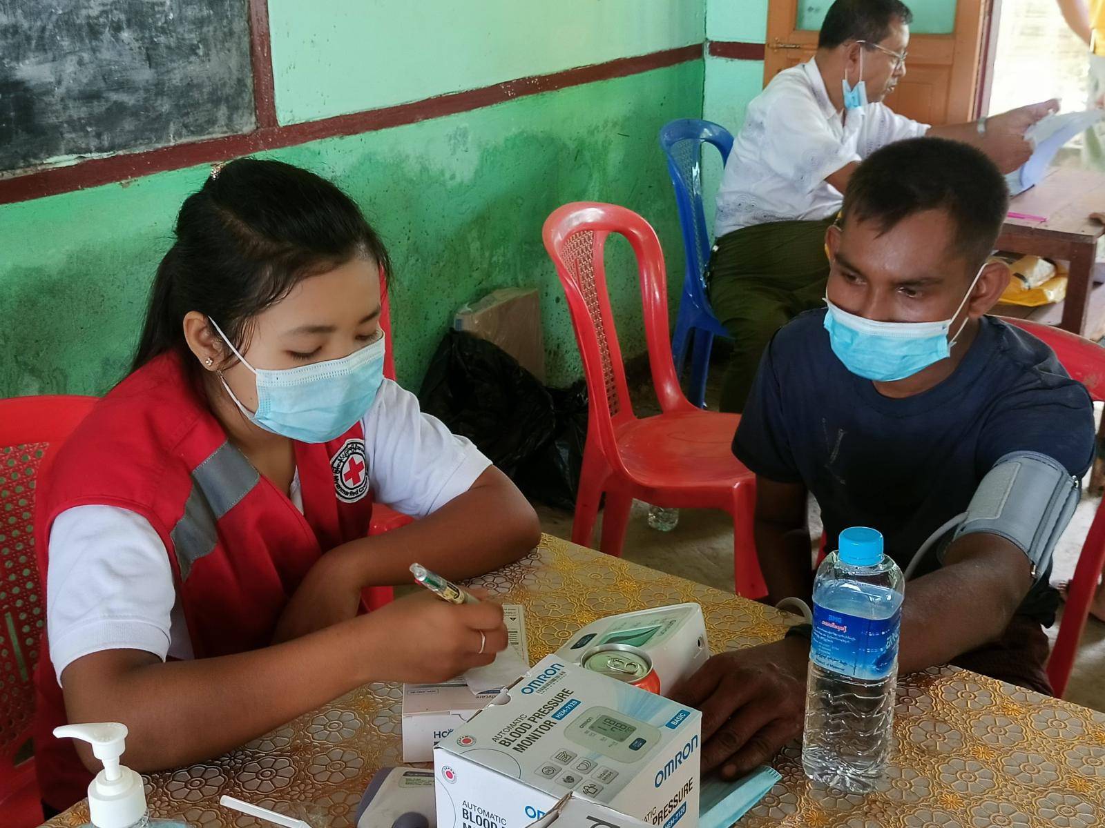 အဆိုပါ ကာကွယ်ဆေးထိုးရန် လာရောက်သည့် အသက်(၅၅)နှစ်အထက်နှင့် ဦးတည်အုပ်စု အကျုံးဝင် သည့် ပြည်သူများအား စာရင်းများပြုစုခြင်း၊ အပူချိန်တိုင်းတာခြင်း၊ သွေးပေါင်းချိန်တိုင်းတာခြင်း၊ ကျန်းမာရေးစစ်ဆေးခြင်းများ ဆောင်ရွက်ကာ ကိုဗစ်-၁၉ ကာကွယ်ဆေး ထိုးနှံပေးပြီး၊ ကာကွယ်ဆေး ထိုးနှံပြီးသူများကို မိနစ်(၃၀)ခန့် အနားယူစေခြင်းဖြင့် ကျန်းမာရေးစောင့်ရှောက်မှုများ ဆောင်ရွက်ပေး လျက်ရှိသည်။