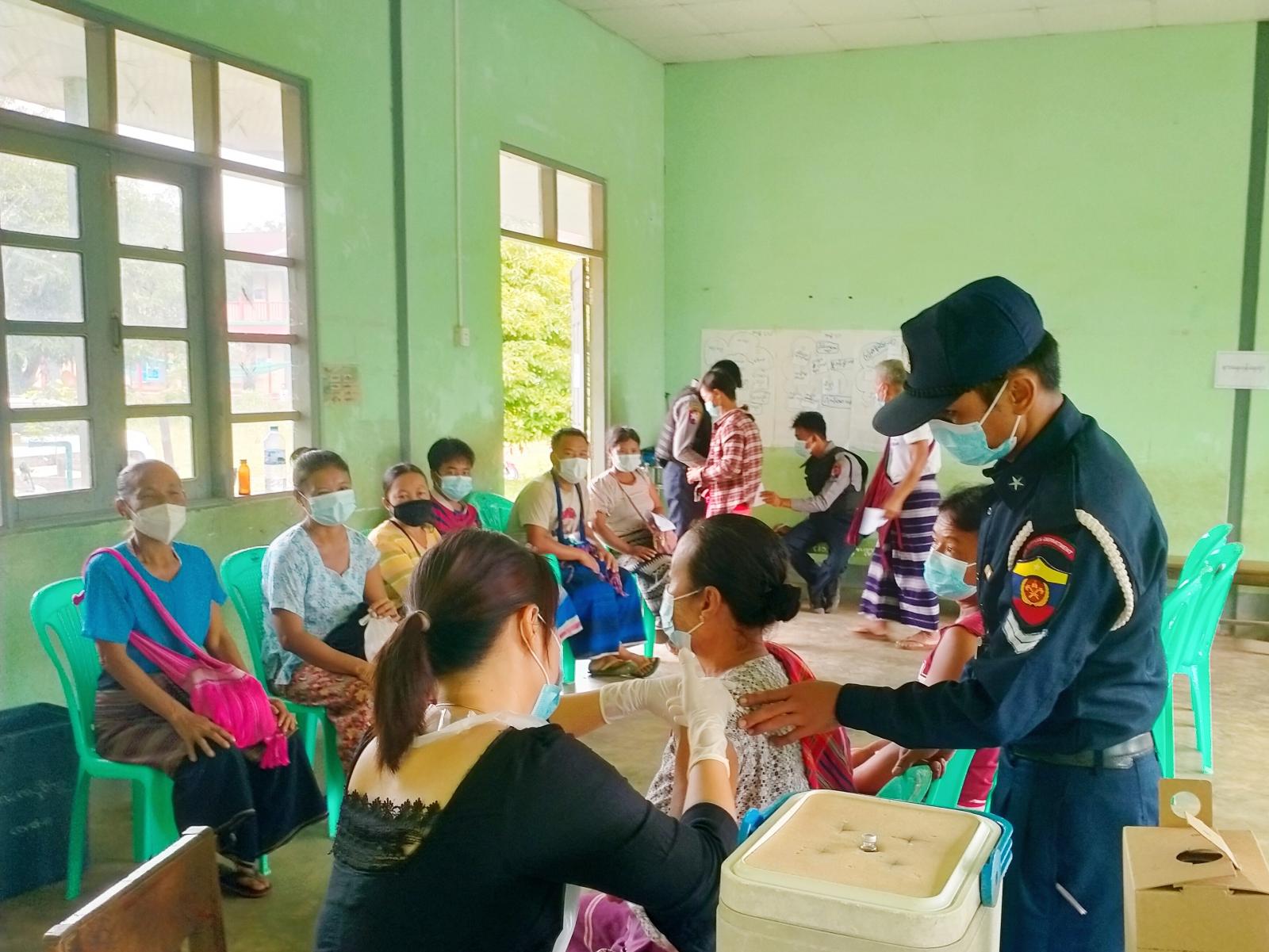 ထို့သို့ ဆောင်ရွက်ရာတွင် ပိုင်ကျုံမြို့ ကျေးလက်ကျန်းမာရေးဦးစီးဌာနမှ ကျန်းမာရေးမှူးဦးသက်နိုင်စိုးဦးဆောင်ပြီး ကျန်းမာရေးဝန်ထမ်းများ၊ စေတနာ့ဝန်ထမ်းများက ကာကွယ်ဆေးလာရောက် ထိုးနှံသူ များအား ကိုယ်အပူချိန်တိုင်း တာပေးခြင်း၊ သွေးပေါင်ချိန်းတိုင်းတာပေးခြင်း ၊သွေးတွင်းအောက်ဆီဂျင် ပါဝင်မှု ပမာဏတိုင်းတာပေးခြင်းတို့ကို ဆောင်ရွက်ပေးခဲ့ပြီး အထွေထွေအုပ်ချုပ်ရေးဦးစီးဌာမှ ဝန်ထမ်းများနှင့် ဌာနဆိုင်ရာ ဝန်ထမ်းများက ကာကွယ် ဆေးထိုးနှံနိုင်ရာတွင် အဆင်ပြေလွယ်ကူစေရန်အတွက် ပူးပေါင်းပါဝင်ဆောင်ရွက်ပေးသွားမည်ဖြစ် ကြောင်း သိရှိရ သည်။