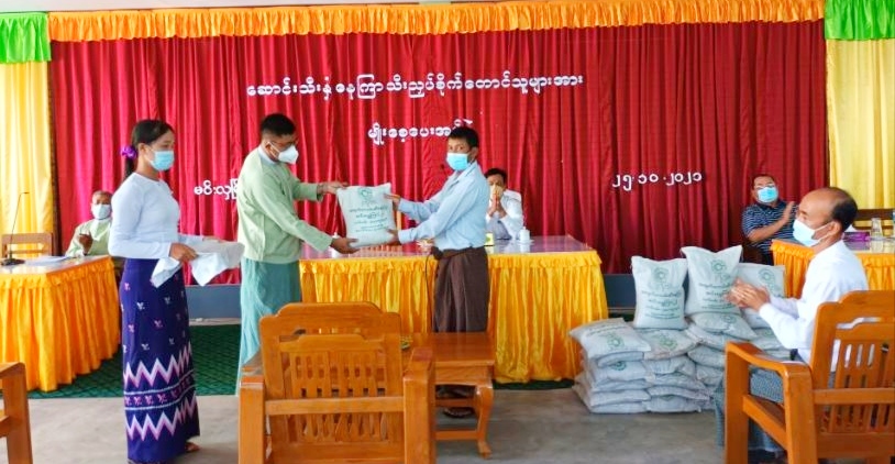 ဆက်လက်၍ ဆောင်းသီးနှံနေကြာသီးညှပ်စိုက် တောင်သူ(၄၄) ဦးအား ဧက(၂၀၀)အတွက် ဆင်းရွှေကြာ(၂) သက်တမ်း(၈၀/၈၅) ရက် မျိုးစေ့များအား ခရိုင်စိုက်ပျိုးရေးဦးစီးမှူးနှင့် တာဝန်ရှိသူများက ပေးအပ်ခဲ့သည်။