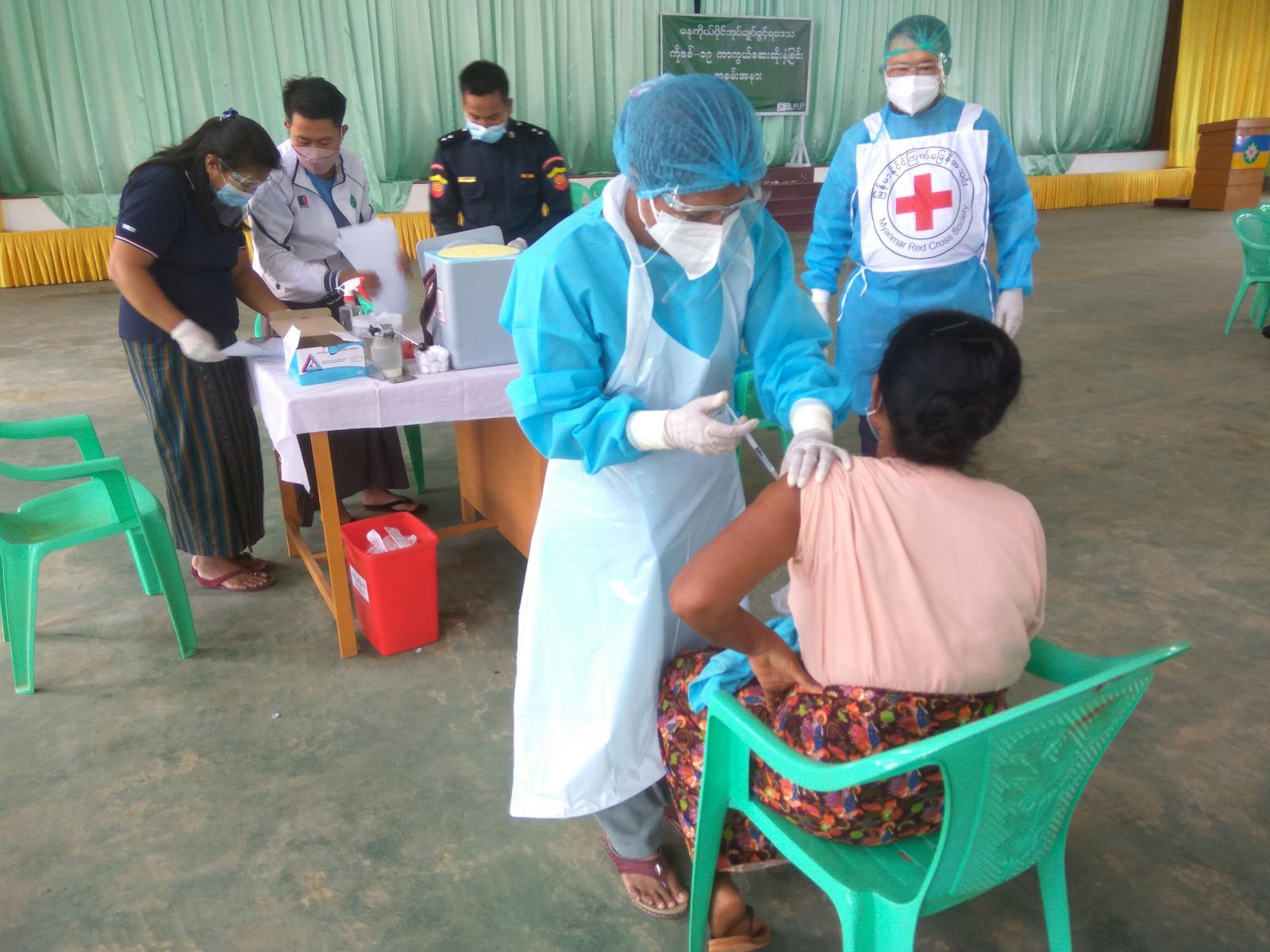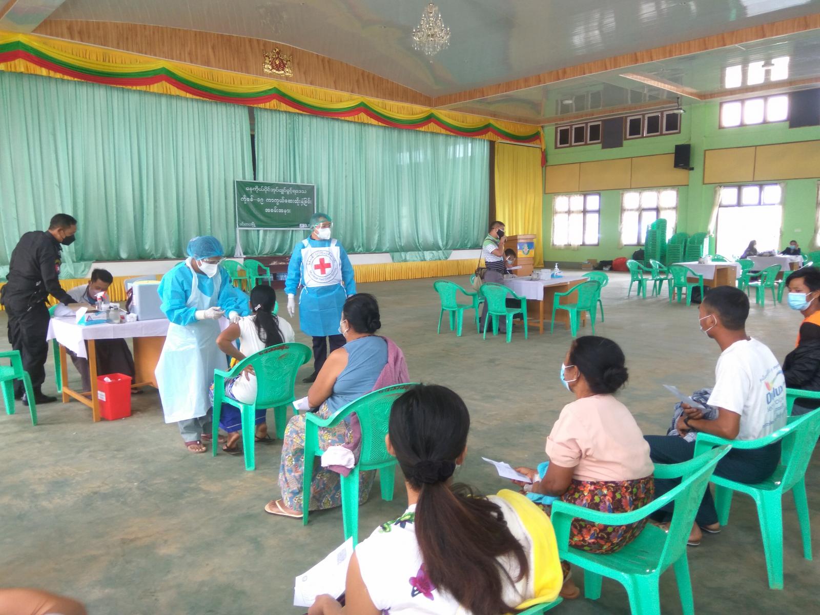 ကိုဗစ်-၁၉ တတိယလှိုင်းကာလ ရောဂါကူးစက်မှုများလျော့ကျလာစေရေးအတွက် ဌာနဆိုင်ရာများ ပူးပေါင်းပါဝင်သော ကိုဗစ်-၁၉ ရောဂါထိန်းချုပ်ရေး နှင့် အရေးပေါ် တုန့်ပြန်ရေး ကော်မတီများဖွဲ့စည်းပြီး တိုင်းဒေသကြီး၊ ပြည်နယ်နှင့်မြို့နယ်များ၊ ကျေးလက် ဒေသများပါမကျန် ကိုဗစ်-၁၉ ရောဂါကာကွယ်ဆေးများထိုးနှံဆောင်ရွက်ပေးလျက်ရှိရာ ရှမ်းပြည်နယ် (တောင်ပိုင်း) ဓနု ကိုယ်ပိုင်အုပ်ချုပ်ခွင့်ရဒေသခန်းမ၌ ယနေ့ နံနက် (၉)နာရီက ရဟန်း သံဃာ တော်များ၊ သက်ကြီးရွယ်အိုများ၊ အသက် (၁၈) နှစ်ပြည့်ပြီးသူများနှင့် ဌာနဆိုင်ရာ ဝန်ထမ်းများအား ကိုဗစ် -၁၉ ရောဂါကာကွယ်ဆေး ဒုတိယအကြိမ် ဒုတိယအသုတ်အား စတုထ္ထနေ့ အဖြစ်၊ ဆက်လက်ထိုးနှံဆောင်ရွက်ပေးလျက်ရှိသည်။