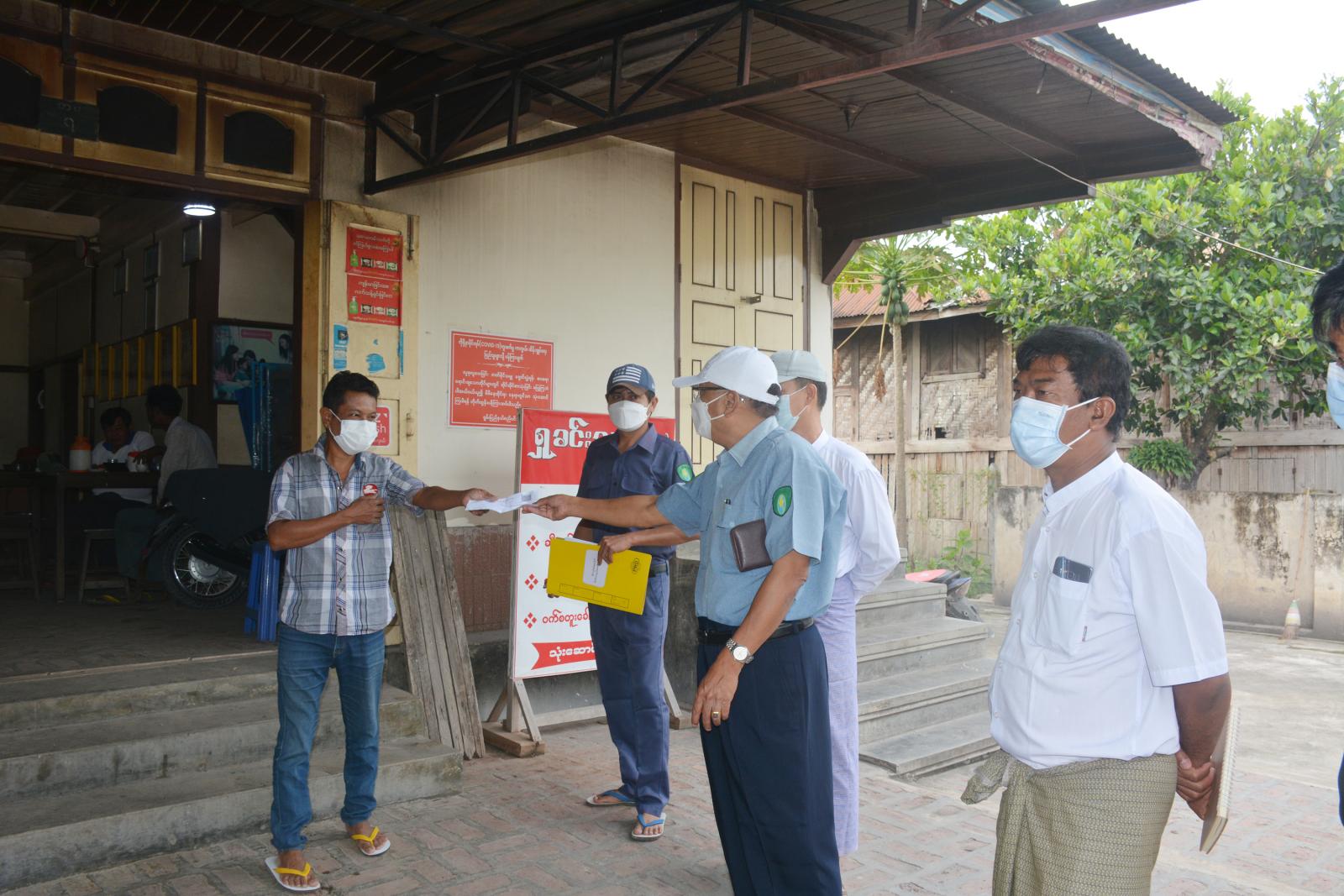 ထိုသို့စစ်ဆေးရာတွင် မြို့နယ်စီမံအုပ်ချုပ်ရေးအဖွဲ့ ဥက္ကဋ္ဌ ဦးအောင်ဘော် နှင့် မြို့နယ်ကိုဗစ်-၁၉ ရောဂါကာကွယ်ထိန်းချုပ်ကုသရေးကော်မတီဝင်တို့က လိုက်လံစစ်ဆေးခဲ့ပြီး ကာကွယ်ဆေး ထိုးနှံခြင်း အားဖြင့် ကိုဗစ်-၁၉ ရောဂါကူးစက်မှုလျော့ချစေရေးအတွက် ဝိုင်ဝန်းပူးပေါင်း ပါဝင်ကူညီကြရန်နှင့် ကာကွယ်ဆေးမထိုးရသေးပါက ကာကွယ်ဆေးကို ပထမအကြိမ် ထိုးနှံသူများ အတွက် အခြေခံပညာ အမှတ်(၂)ကျောင်းတွင် ထိုးနှံပေးလျက်ရှိကြောင်း ချက်ချင်းသွားရောက်ထိုးနှံကြရန် မြို့နယ်စီမံအုပ်ချုပ်ရေး အဖွဲ့ ဥက္ကဋ္ဌ က တိုက်တွန်း ပြောကြားခဲ့ကြောင်း သိရသည်။