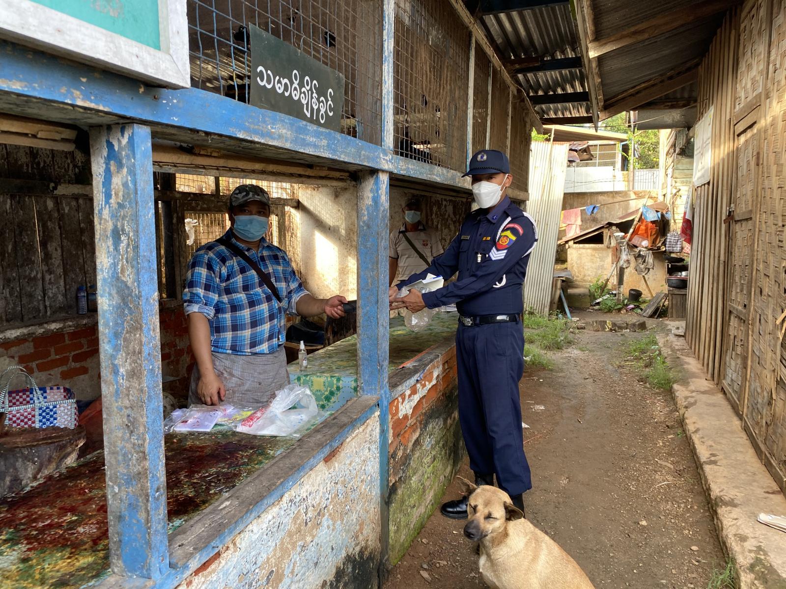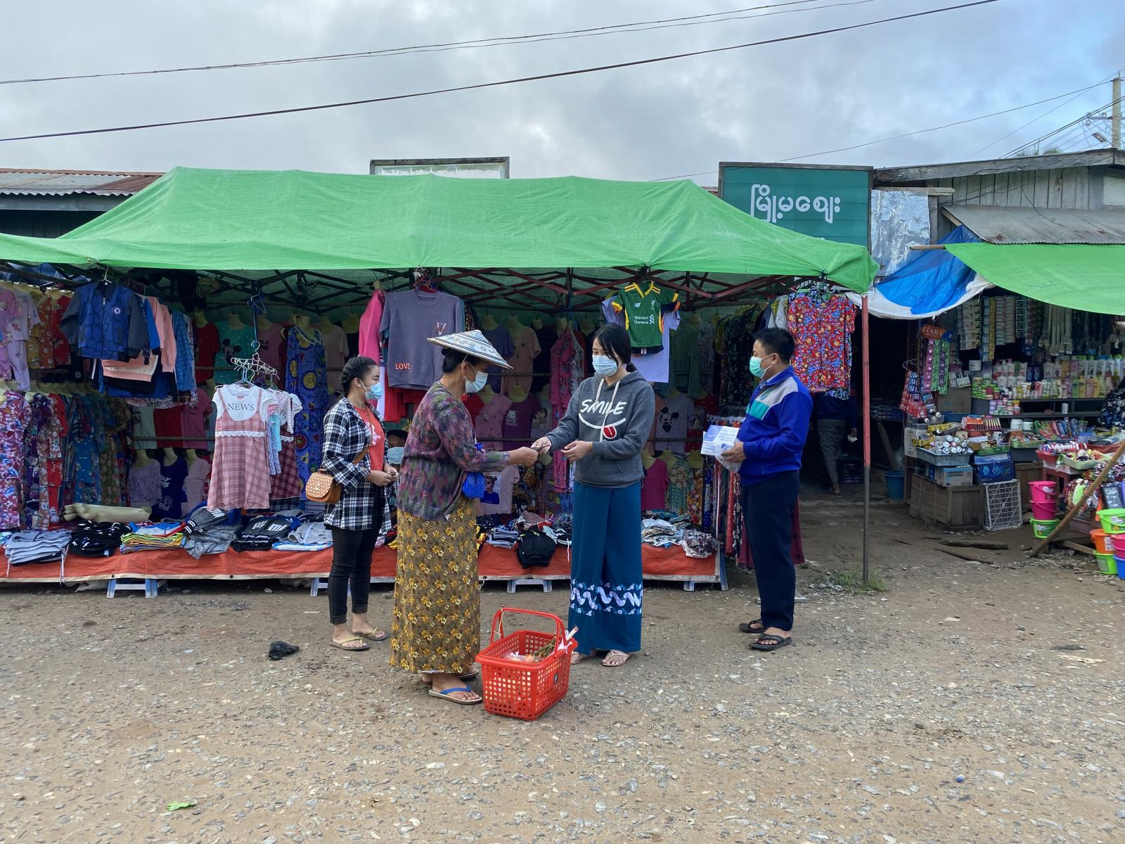 ထိုသို့ ဆောင်ရွက်ရာတွင် စျေးရောင်းသူ၊ စျေးဝယ်သူများ အနေဖြင့် ကာကွယ်ဆေးထိုးနှံပြီးမှသာ စျေးရောင်း၊စျေးဝယ် ဆောင်ရွက်ကြရန်၊ Mask (နှာခေါင်းစည်း)အား မဖြစ်မနေ တပ်ဆင်ကြရန် အသိပညာပေးခဲ့ပြီး Mask (နှာခေါင်းစည်း)များ အခမဲ့ဖြန့်ဝေခဲ့ကြသည်။
