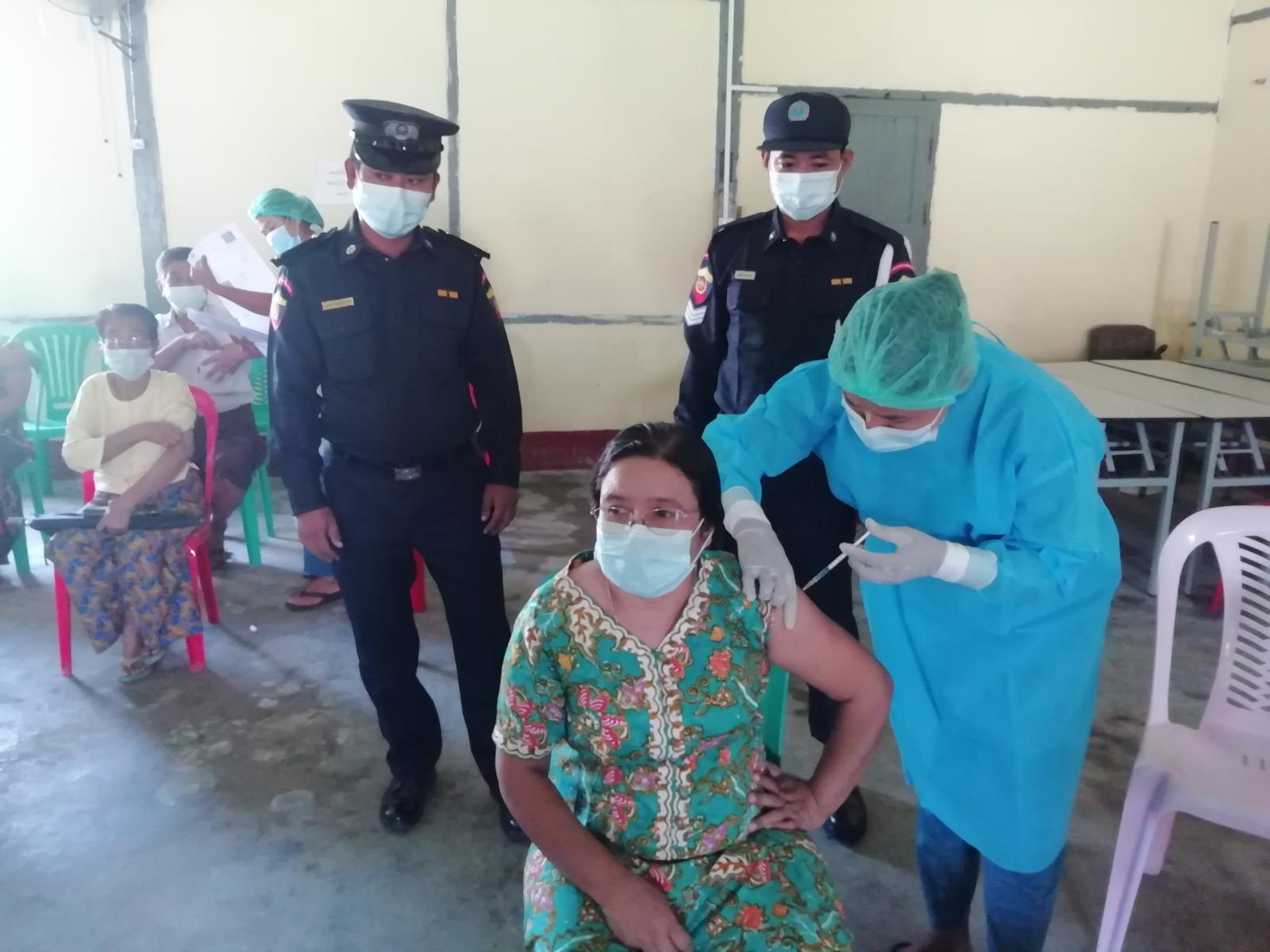 ထိုသို့ ကာကွယ်ဆေးထိုးနှံပေးရာတွင် မြို့နယ်ကိုဗစ်-၁၉ရောဂါကာကွယ် ထိန်းချုပ်ရေးနှင့်အရေးပေါ်တုံ့ပြန်ရေးကော်မတီက ကြီးကြပ်မှုဖြင့် မြို့နယ်ကျန်းမာရေးဦးစီးဌာနမှ ဝန်ထမ်းများ၊ မြို့နယ် အထွေထွေအုပ်ချုပ်ရေး ဦးစီးဌာနမှ ဝန်ထမ်းများ၊ မီးသတ်တပ် ဖွဲ့ဝင်များ၊ မြန်မာနိုင်ငံရဲတပ်ဖွဲ့ဝင်များနှင့် ရပ်ကွက်/ကျေးရွာအုပ်ချုပ်ရေးမှူးများက ပူးပေါင်းပါဝင် ကူညီခဲ့ကြ ကြောင်း သိရသည်။