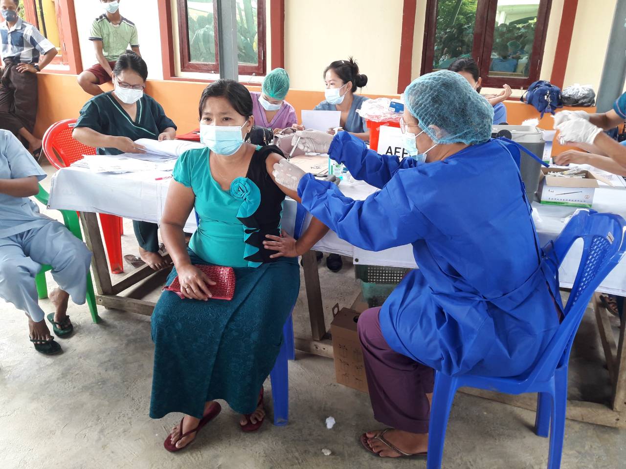 ထိုသို့ ကိုဗစ်-၁၉ ကာကွယ်ဆေးများ ဒုတိယအကြိမ်ဆက်လက်ထိုးနှံပေးရာတွင် မြို့နယ်အတွင်းရှိ မြို့ပေါ်ရပ်ကွက်များနှင့် ကျေးရွာအုပ်စုများမှ ပြည်သူများ၊ သံဃာတော်များနှင့် သာသနာ့နွယ်ဝင် သီလရှင်များကို (Sinopharm) ကိုဗစ်-၁၉ ကာကွယ်ဆေးများအား သတ်မှတ်စုရပ်နေရာများ၌ ဆက်လက်ထိုးနှံပေးလျှက်ရှိသည်။ ထိုသို့ကာကွယ်ဆေးများ ဒုတိယအကြိမ် ဆက်လက်ထိုးနှံပေး ရာ၌ ကာကွယ်ဆေးလာရောက် ဆေးထိုးနှံကြသူများအား ကာကွယ်ဆေးမထိုးနှံမီ လိုအပ်သော ကျန်းမာရေး စောင့်ရှောက်မှုများဖြစ်သော ကိုယ်အပူချိန်တိုင်းတာပေးခြင်း၊ သွေးပေါင်ချိန်တိုင်း တာပေးခြင်း၊ သွေးတွင်းအောက်ဆီဂျင်လိုအပ်ချက်ပြည့်ဝမှု ရှိ/မရှိ တိုင်းတာပေးခြင်းနှင့် ပုံမှန် အနေအထားရောက်ရှိမှသာ ကိုဗစ်-၁၉ ကာကွယ် ဆေးထိုးနှံပေးလျှက်ရှိပြီး ကာကွယ်ဆေးထိုး နှံပြီးသူများကို မိနစ် ၃၀ ခန့်အနားယူစေခြင်းများအား မြို့နယ်ပြည်သူ့ကျန်းမာရေးဝန်ထမ်းများ၊ မြန်မာနိုင်ငံရဲတပ်ဖွဲ့ဝင်များ၊ မြို့နယ်မီးသတ်တပ်ဖွဲ့ဝင်များနှင့် မြို့နယ်ကြက်ခြေနီတပ်ဖွဲ့ဝင်များက ကူညီဆောင်ရွက်ပေးလျက်ရှိပြီး ကာကွယ်ဆေးလာရောက်ထိုးနှံပြီးသူများအား ဆေးထိုးနှံပြီး ကြောင်းလက်မှတ်များ တစ်ပါတည်းပေးအပ်ခဲ့ကြောင်း သိရသည်။