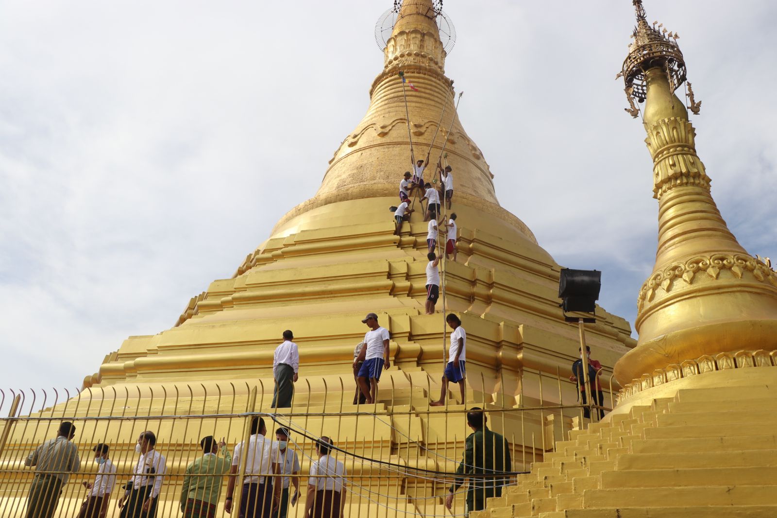 ရှေးဦးစွာ ပြည်နယ်ဝန်ကြီးချုပ် က စေတီတော်မြတ်ကြီးလုံးတော်ပြည့် ရွှေသင်္ကန်းကပ်လှူခြင်း၊ ရွှေစင်၊ ရွှေပြားကပ်လှူခြင်း၊ စိန်ဖူးတော်၊ ငှက်မြတ်တော်နှင့် ထီးတော်တို့အား အကြီးစား ပြုပြင်ခြင်း လုပ်ငန်းများဖြင့် ပူဇော်နိုင်ရန် ဆောင်ရွက်နေမှုကိုကြည့်ရှုကာ ဓမ္မာရုံတွင်စေတီတော်မြတ်ကြီး ဘက်စုံမွမ်းမံဆောင်ရွက်နိုင်ရေး၊ အချိန်မီပြီးစီးရေး၊ ကိုဗစ်-၁၉ ကာလဖြစ်သည်နှင့်အညီ ကျန်းမာရေးဝန်ကြီးဌာနမှ ထုတ်ပြန်ထားသည့် စည်းကမ်းချက်များဖြင့် ပြည်တွင်း၊ ပြည်ပဘုရားဖူး ပြည်သူများဖူးမျှော်နိုင်ရန် စီစဉ်ဆောင်ရွက်ထားရှိရေးတို့ကို တာဝန်ရှိသူများအား လမ်းညွှန်မှာကြားပြီး စေတီတော်မြတ်ကြီး ဘက်စုံပြုပြင်မွမ်းမံခြင်းလုပ်ငန်များ ဆောင်ရွက်နိုင်ရေးအတွက် လိုအပ်သည်များကို ဆွေးနွေးညှိနှိုင်း ပေးသည်။