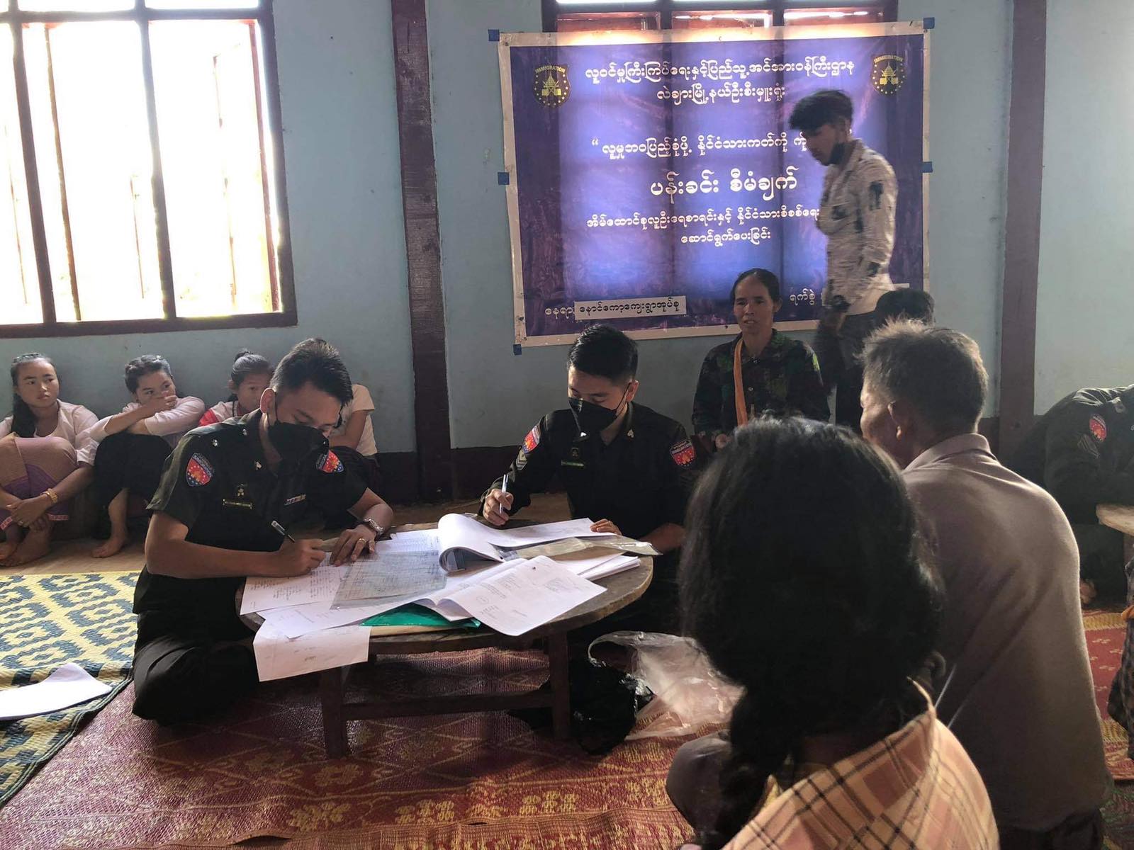 ရှမ်းပြည်နယ်တောင်ပိုင်း၊ လွိုင်လင်ခရိုင်၊လဲချားမြို့နယ်၌ မြို့ပေါ်ရပ်ကွက်များနှင့် ကျေးရွာအုပ်စုများ အတွင်းရှိ ပြည်သူများ အိမ်ထောင်စု လူဦးရေစာရင်းနှင့် နိုင်ငံသားစိစစ်ရေး ကတ်ပြားများကို မြို့နယ်လူဝင်မှုကြီးကြပ်ရေးနှင့် ပြည်သူ့အင်အား ဦးစီးဌာန မြို့နယ်ဦးစီးရုံးမှ ဒုတိယလဝကမှူး ဦးစိုင်းအောင်ထက်နောင်နှင့် ဝန်ထမ်းများက ယမန်နေ့ မွန်းလွဲ( ၁) နာရီက နောင်ကော့ကျေးရွာအုပ်စု၊ဝမ်ပုတ်ကျေးရွာ ထမ်ခမ်းကျေးရွာဘုန်းတော်ကြီးကျောင်း တွင် ပန်းခင်းစီမံချက်ဖြင့် ကွင်းဆင်းဆောင်ရွက်ပေးခဲ့သည်။