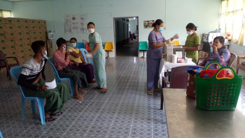 ထိုသို့ ကာကွယ်ဆေးများထိုးနှံပေးရာတွင် မြို့နယ်ပြည်သူ့ကျန်းမာရေးဦးစီးဌာန၊ ဒုမြို့နယ်ပြည်သူ့ကျန်းမာရေးဦးစီးဌာနမှူး ဒေါက်တာသိမ့်အိသူ (ပြည်သူ့ ကျန်းမာ)နှင့် ကျန်းမာရေး၀န်ထမ်းများ၊ မြို့နယ်အထွေထွေအုပ်ချုပ်ရေး ဦးစီးဌာနမှ ၀န်ထမ်းများ၊ မီးသတ်တပ်ဖွဲ့၀င်များ၊ မြို့နယ် ကြက်ခြေနီသူနာပြု တပ်ဖွဲ့၀င်များ၊ပရဟိတအသင်းအဖွဲ့၀င်များ၊ရပ်ကွက်/ ကျေးရွာအုပ်ချုပ်ရေးမှူး များပူးပေါင်း၍ အသက်(၁၈)နှစ် အထက်နှင့် ပြည်သူများအား ဒုတိယအသုတ် ပထမ အကြိမ် ကာကွယ်ဆေးဆက်လက် ထိုးနှံပေးခဲ့ကြောင်း သိရသည်။