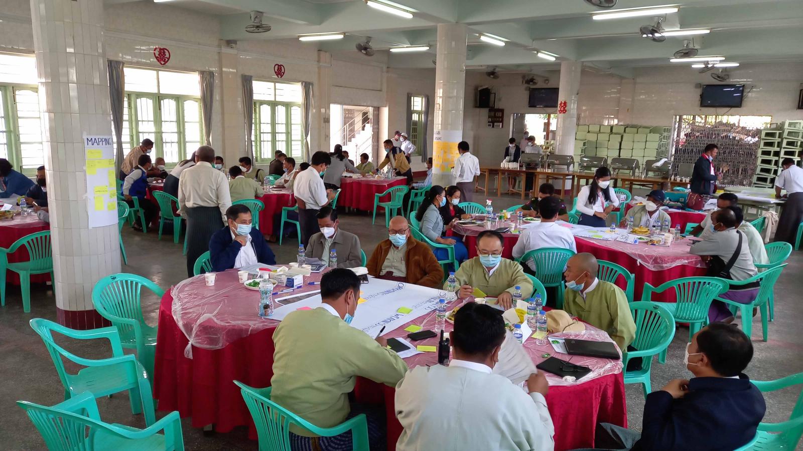 ရှေ့ဦးစွာ ခရိုင်စီမံအုပ်ချုပ်ရေးအဖွဲ့ဥက္ကဋ္ဌ ဦးတင်မောင်ဝင်းမှ အဖွင့်အမှာစကား ပြောကြားပြီး မြို့ပြစီမံကိန်းရေးဆွဲရေးအဖွဲ့မှ လက်ထောက်ညွှန်ကြားရေးမှူး ဒေါ်အိမ်နန်းမေမှ အလုပ်ရုံဆွေးနွေးပွဲ ကျင်းပရခြင်းအကြောင်း ရှင်းလင်းပြောကြား ပြီး ဆွေးနွေးပွဲတွင် ပါဝင်ဆွေးနွေးသူများအား အဖွဲ့ (၁) ဖွဲ့လျှင် လူဉီးရေ (၁၂) ဦးဖြင့် အဖွဲ့ (၅) ဖွဲ့ခွဲပြီး ပါဝင်ဆွေးနွေးခဲ့ကြသည်။