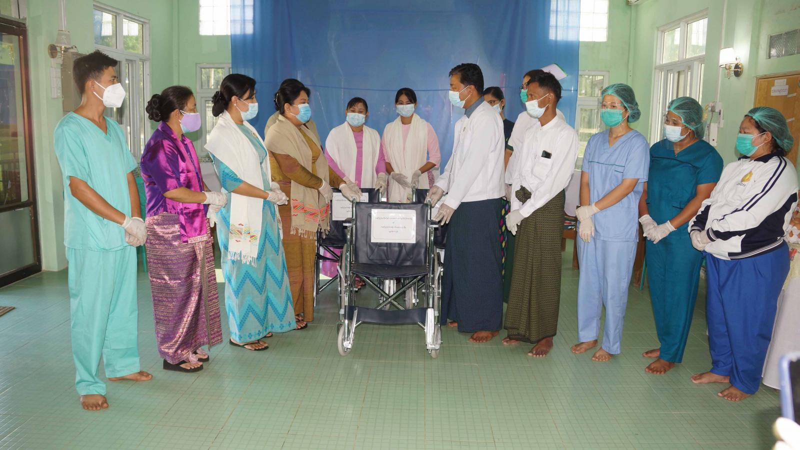 ဆက်လက်၍ ကချင်ပြည်နယ်မိခင်နှင့်ကလေးစောင့်ရှောက်မှုကြီးကြပ်ရေးအဖွဲ့နှင့် ပြည်နယ်အမျိုးသမီး ရေးရာအဖွဲ့ နာယက ဒေါ်နန်ဆိုင်း၊အဖွဲ့ဝင် ဒေါ်သွဲ့လေးအောင်နှင့်ခရိုင်အမျိုးသမီးရေးရာအဖွဲ့ ဥက္ကဋ္ဌ ဒေါ်ဝင်းမြတ်ဖြူတို့က ကချင်ပြည်နယ်မိခင်နှင့်ကလေး စောင့်ရှောက်မှုကြီးကြပ်ရေးအဖွဲ့နှင့် ပြည်နယ် အမျိုးသမီး ရေးရာအဖွဲ့တို့မှပေးပို့လှူဒါန်းသော ဝှီးချဲတစ်စီးလျှင်ကာလ တန်ဖိုးကျပ် (၂၀၄၀၀၀)သိန်း စုစုပေါင်းကျပ်(၆၁၂၀၀၀)သိန်းတန်ဖိုးရှိ ဝှီးချဲသုံးစီးနှင့်ခရိုင်/မြို့နယ် အမျိုးသမီးရေးရာအဖွဲ့တို့မှ ခရိုင်ပြည်သူ့ ဆေးရုံအတွက် လှူဒါန်းသော အာဟာရဖြည့်ကြက်ဥများကိုပေးအပ်လှူဒါန်းရာခရိုင် ဆေးရုံ အုပ် ဒေါက်တာသန့်ဇင်ထွန်းနှင့် ကျန်းမာရေးဝန်ထမ်းများကလက်ခံရယူခဲ့ကြောင်းသိရသည်။