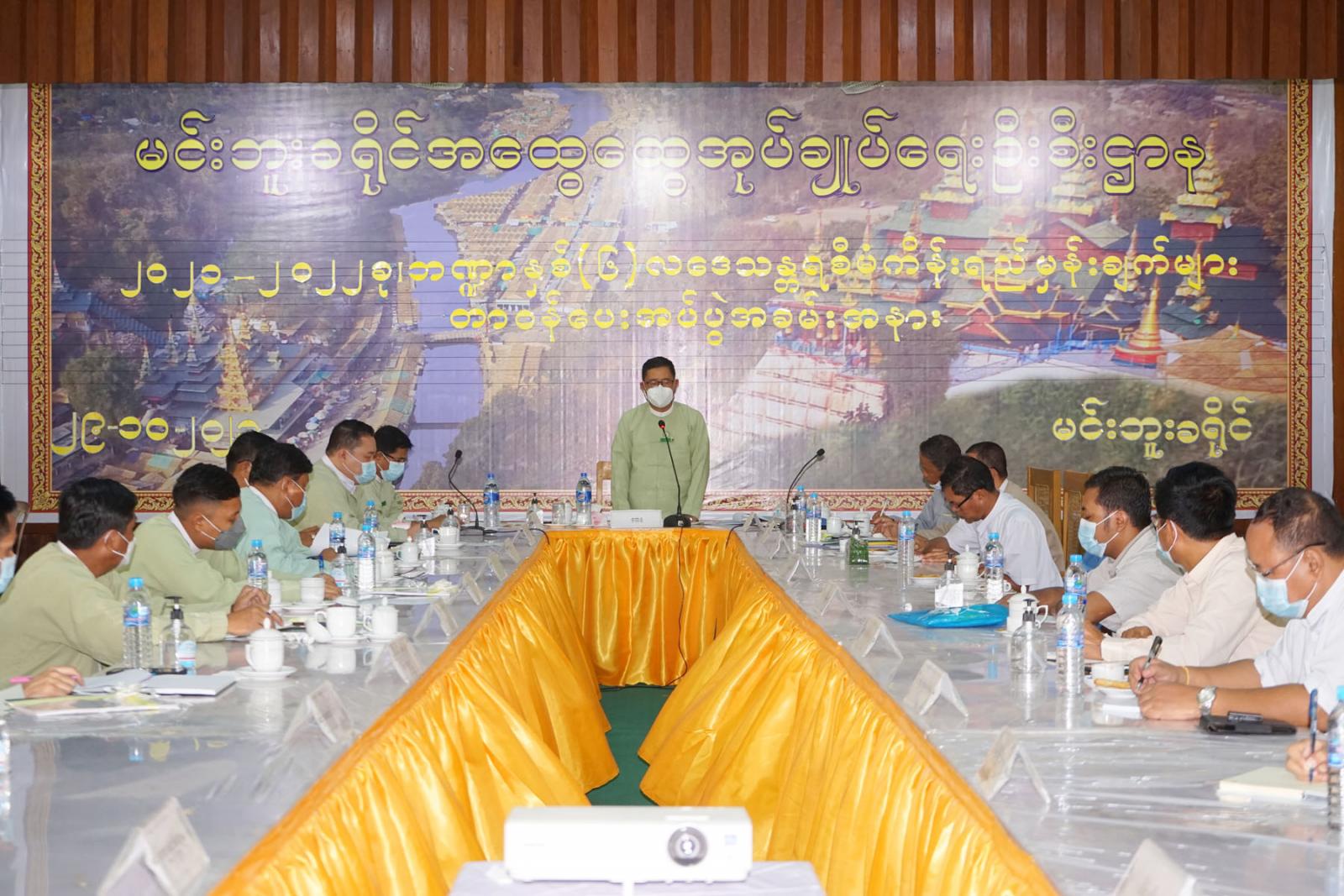 မကွေးတိုင်းဒေသကြီး၊ မင်းဘူးခရိုင် ကိုဗစ်-၁၉ ရောဂါ ကြိုတင်ကာကွယ်ထိန်းချုပ်ရေးနှင့် အရေးပေါ် တုံ့ပြန်ရေးကော်မတီ လုပ်ငန်းညှိနှိုင်းအစည်းအဝေး အမှတ်စဉ် (၂၈/၂၀၂၁)ကို ယနေ့နံနက် ၁၀ နာရီ အချိန်က မင်းဘူးခရိုင် အထွေထွေအုပ်ချုပ်ရေးဦးစီးဌာန အစည်းအဝေး ခန်းမ၌ ဒေသန္တရစီမံကိန်း ရည်မှန်းချက်များ တာဝန်ပေးအပ်ပွဲအပြီးတွင် ဆက်လက်ကျင်းပ ခဲ့ကြောင်းသိရသည်။