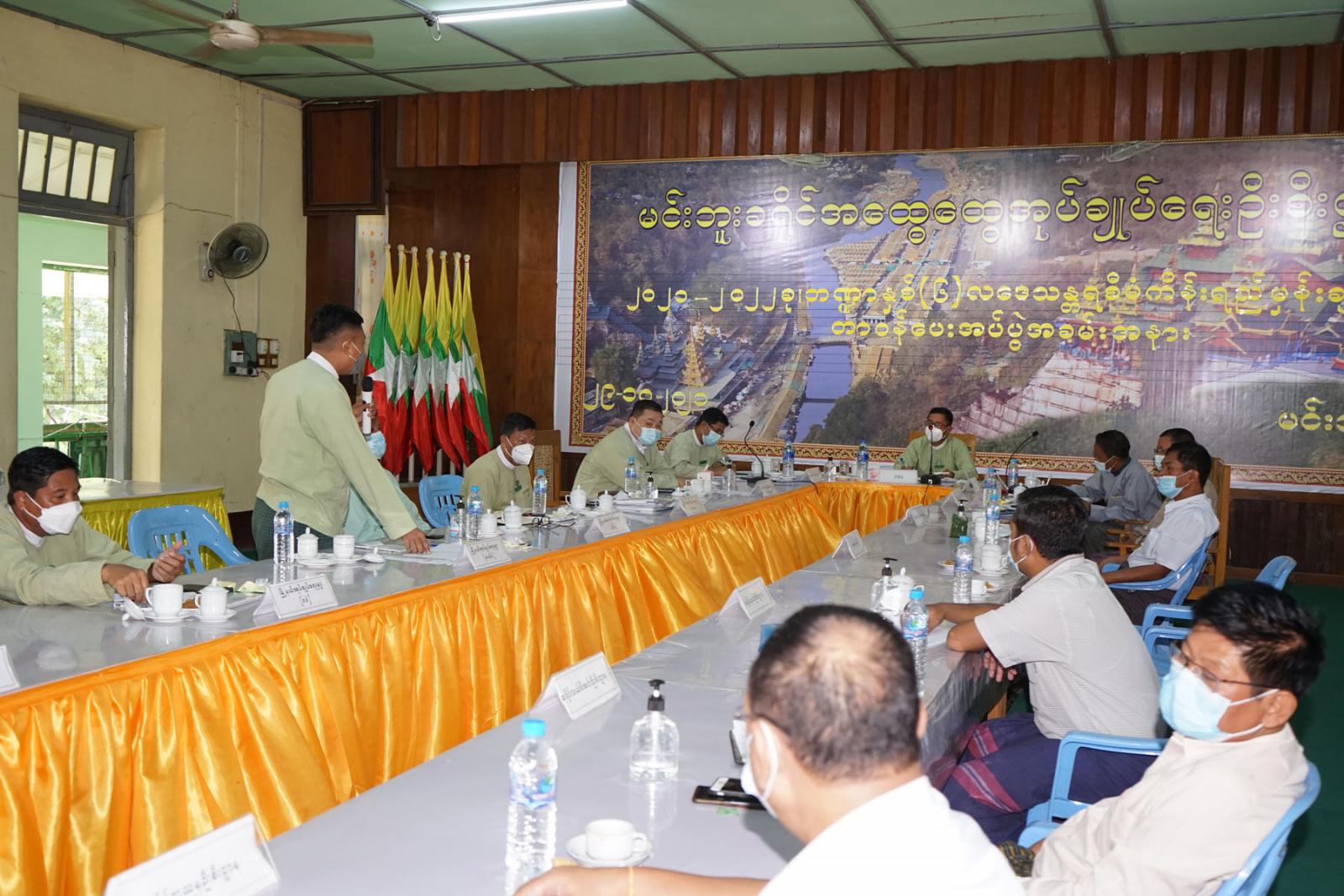 ထို့နောက် တက်ရောက်လာကြသော ကိုဗစ်ကော်မတီ အဖွဲ့ဝင်များနှင့် မြို့နယ်အုပ်ချုပ်ရေးမှူး များက မိမိတို့မြို့နယ်အလိုက် လုပ်ငန်းဆောင်ရွက်ချက်များနှင့် အောက်ဆီဂျင်စက်ရုံများ ထုတ်လုပ် လည်ပတ်နေမှုများ၊ ကာကွယ်ဆေးများ ဆက်လက်ထိုးနှံပေးနေမှုနှင့် ထိုးနှံပြီးစီးမှု အခြေအနေများကို ရှင်းလင်းတင်ပြခဲ့ကြသည်။
