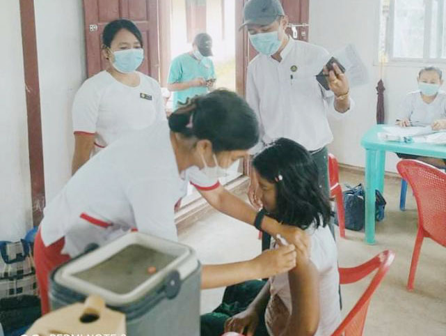 ရခိုင်ပြည်နယ်၊ မောင်တောမြို့၌ အခြေခံပညာကျောင်းများရှိ အသက်(၁၂)နှစ် အထက် ကျောင်းသား/သူ များအား (ပထမ)အကြိမ်အဖြစ် ယမန်နေ့နံနက် ၉ နာရီအချိန် သတ်မှတ်စုရပ်နေရာများတွင် ဆက်လက်ထိုးနှံပေးလျက် ရှိကြောင်း သိရသည်။