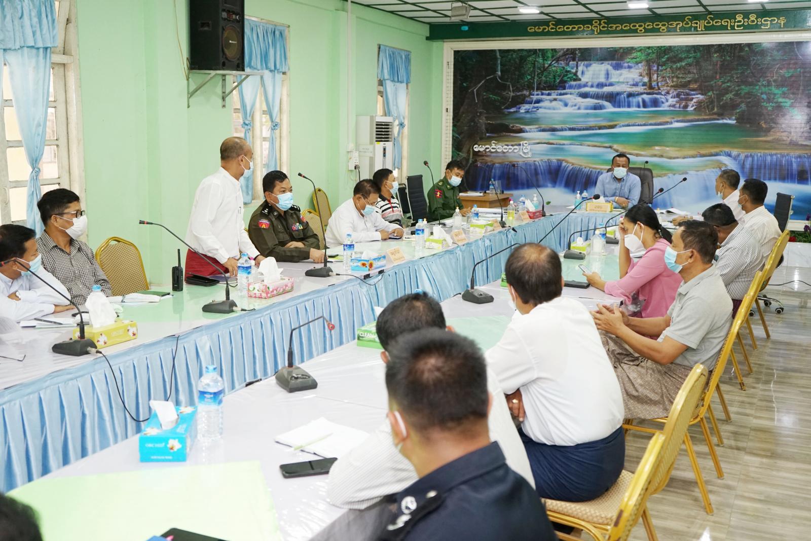 ဆက်လက်၍ ခရိုင်သာသနာရေးဦးစီးဌာန၊ ခရိုင်သာသနာ့ရေးမှူးမှ ၂၀၂၁ ခုနှစ်၊ နိုဝင်ဘာ ၁၅ ရက်၊ တန်ဆောင်မုန်းလဆန်း (၁၂)ရက်နေ့တွင် သာသနာ့ဗိမ္မာန်၌ ကိုဗစ်-၁၉ ရောဂါ ကာကွယ်နိုင်ရေး စည်းကမ်းချက်များနှင့်အညီ စုပေါင်း မဟာဘုံကထိန်ပွဲတော် ကျင်းပနိုင်ရေးအတွက် ယခုလက်ရှိဆောင်ရွက်နေသည့် အခြေအနေများ၊ ဆက်လက်ဆောင်ရွက်မည့် အစီအစဉ်များအား ဆွေးနွေး တင်ပြခဲ့သည်။ ထို့နောက် တက်ရောက်လာကြသော ဌာနဆိုင်ရာများ တာဝန်ရှိသူများက မဟာဘုံကထိန်ဖြစ်မြောက်ရေး ကော်မတီများ၏ ကဏ္ဍအလိုက် ဆောင်ရွက်နေသည့် လုပ်ငန်း တာဝန်များက အသီးသီး ဆွေးနွေးတင်ပြကြရာ တင်ပြချက်များအပေါ် ခရိုင်စီမံအုပ်ချုပ်ရေး အဖွဲ့ဥက္ကဋ္ဌမှ ပေါင်းစပ် ညှိနှိုင်းပေးခဲ့ကြောင်း သိရသည်။