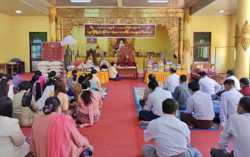 ရှေးဦးစွာ နမောတဿ သုံးကြိမ်ရွတ်ဆိုဘုရားကန်တော့၍ ဖွင့်လှစ်ခဲ့ပြီး မဟာဝေယံဘုံကျော် ကျောင်းတိုက် ဆရာတော် ဘဒ္ဒန္တသီရိဓမ္မထံမှ ငါးပါးသီလခံယူ ဆောက်တည်ပြီး ဆရာတော်ကြီးများထံမှ ပရိတ်တရာတော် နာယူကြည်ညိုကြသည်။