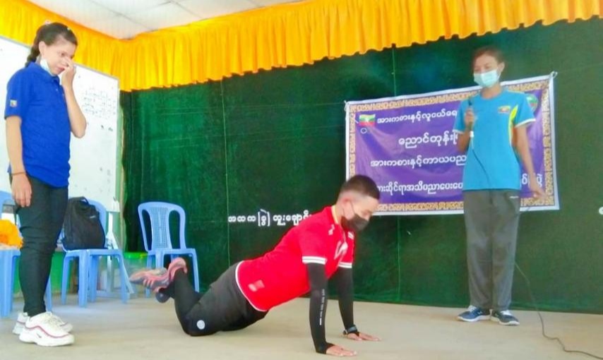 အဆိုပါအသိပညာပေးဟောပြောပွဲတွင် မြို့နယ်အားကစားနှင့်ကာယပညာဦးစီးဌာနမှ မြို့နယ် အားကစားမှူးက အားကစားဆိုင်ရာအသိပညာပေးဟောပြောခဲ့ပြီး လက်ကမ်းစာစောင်များ ဖြန့်ဝေခြင်း၊ အားကစားပစ္စည်းများ ပေးအပ်လှူဒါန်းခြင်းနှင့် "ကိုယ်ခံစွမ်းအားမြင့်တင်ရေး အား ကစားပုံမှန်လှုပ်ရှားပေး"အစီအစဉ်ကိုအခြေခံကာအားကစားကိုစိတ်ပါဝင်စားမှုရှိလာစေရန်ရည်ရွယ်၍ ကျောင်းသား/သူများနှင့်အတူ Myanmar Fitness Danceဖြင့် စုပေါင်းလေ့ကျင့် သရုပ်ပြ ခြင်းများဆောင်ရွက်ခဲ့ကြောင်းသိရသည်။