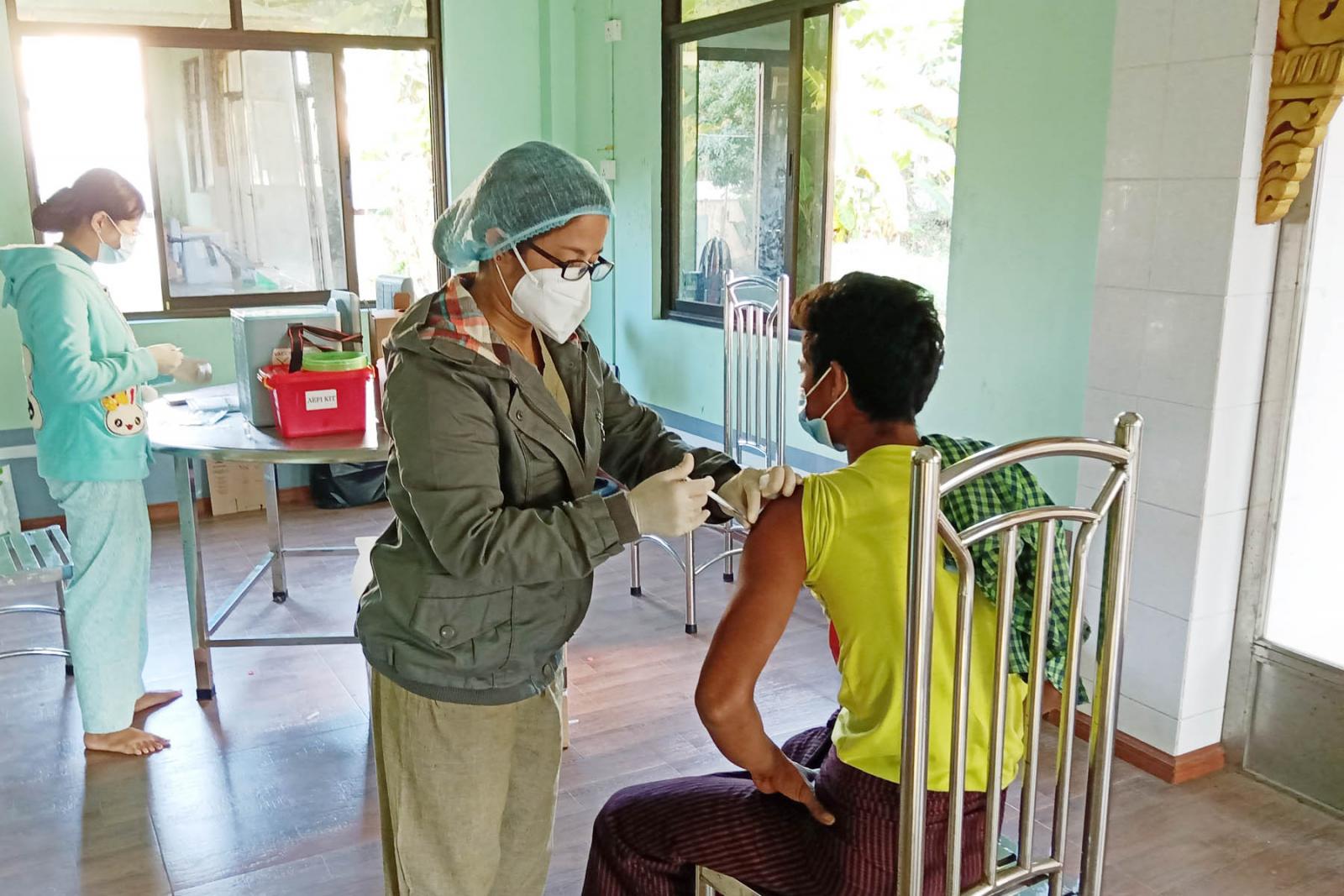 ထိုသို့ကာကွယ်ဆေးထိုးနှံရာတွင် ကာကွယ်ဆေးထိုးခြင်းမပြုမီ ကျန်းမာရေးဝန်ထမ်းများက ကိုယ်အပူချိန် တိုင်းတာပေးခြင်း၊ သွေးပေါင်ချိန်တိုင်းတာပေးခြင်းများ လုပ်ငန်းများ ဆောင်ရွက်ပြီး မြို့နယ် အထွေထွေအုပ်ချုပ်ရေး ဦးစီးဌာန ဝန်ထမ်းများက ကာကွယ်ဆေး ထိုးနှံသူများ၏ အမည်စာရင်း ဖြည့်သွင်းခြင်း၊ မီးသတ်တပ်ဖွဲ့ဝင်များက သက်ကြီး ဘိုးဘွားများနှင့် မသန်စွမ်းသူများအား ကူညီဆောင်ရွက်ခြင်း လုပ်ငန်းများအား ဆောင်ရွက် ပေးခဲ့ကြောင်း သိရသည်။