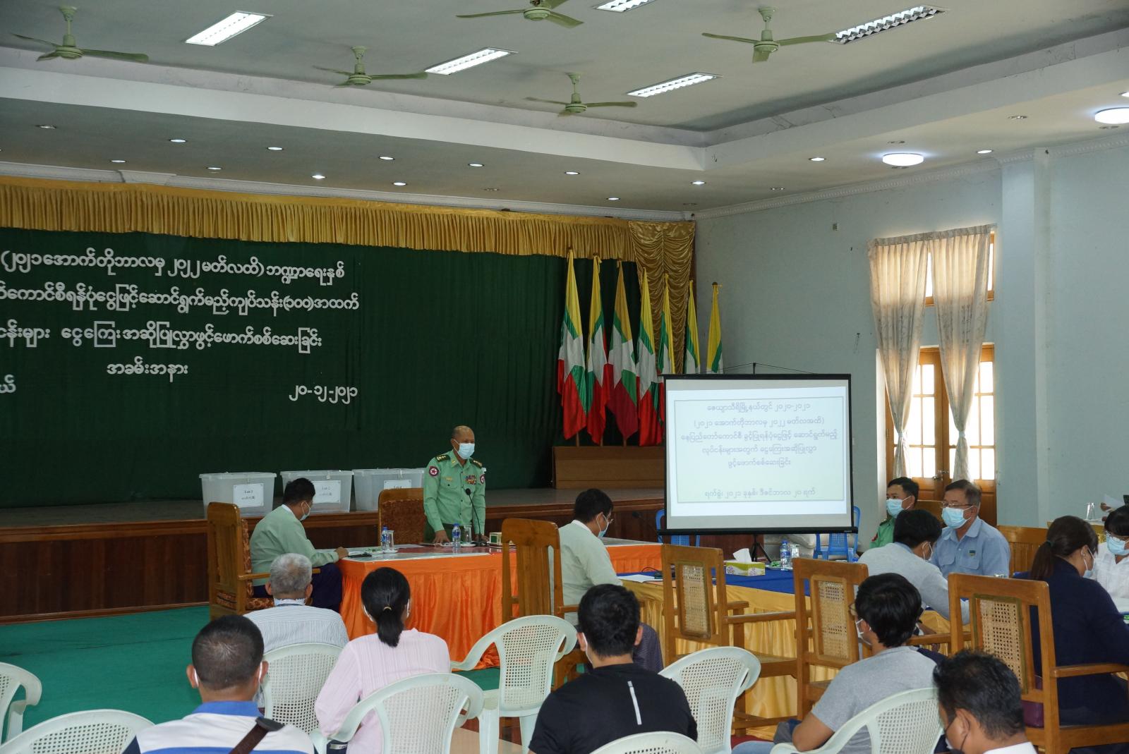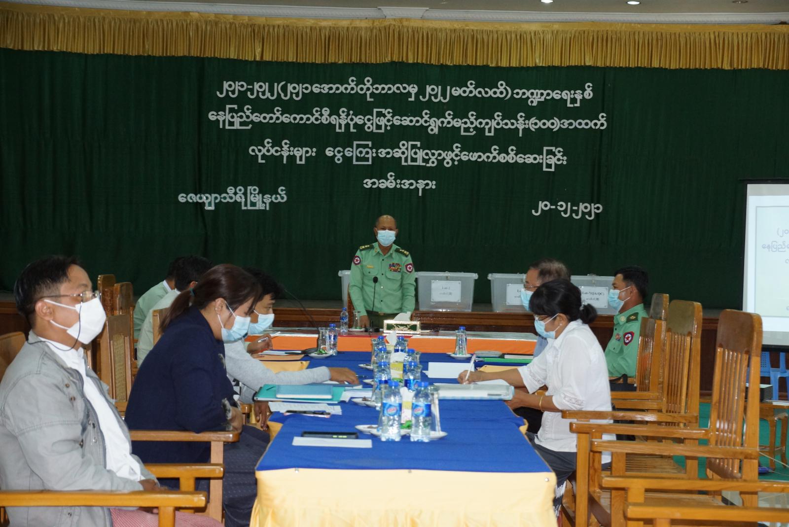 ၂၀၂၁-၂၀၂၂ ဘဏ္ဍာရေးနှစ်(၆)လအတွင်း နေပြည်တော်ကောင်စီ ငွေလုံးငွေရင်းခွင့်ပြု ရန်ပုံငွေဖြင့် ဆောင်ရွက်မည့် ကျပ်သန်း (၁၀၀) အထက် လုပ်ငန်းများအတွက် နည်းပညာ အဆိုပြုလွှာ ဖွင့်ဖောက်စစ်ဆေးသည့် အခမ်းအနားကို ယမန်နေ့ မွန်းလွဲပိုင်းက နေပြည်တော်၊ ဇေယျာသီရိမြို့နယ် အထွေထွေအုပ်ချုပ်ရေးဦးစီးဌာန အစည်းဝေးခန်းမ၌ ကျင်းပခဲ့သည်။