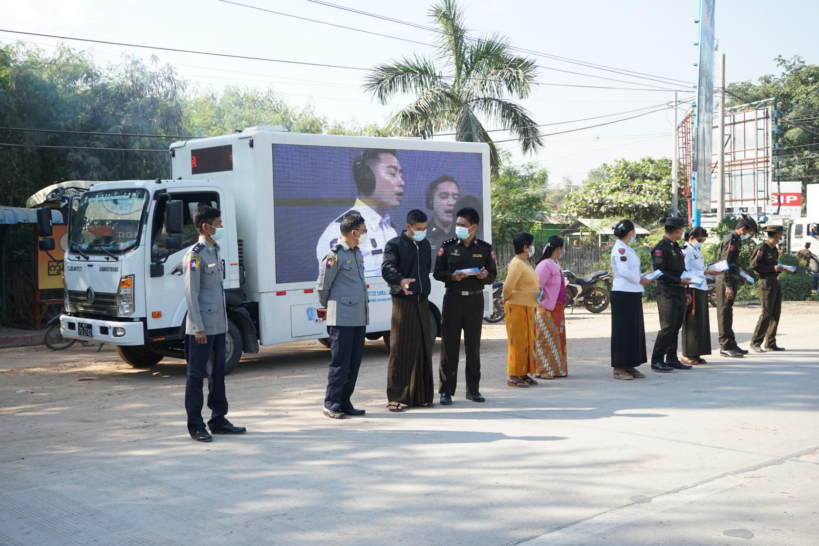 မန္တလေးတိုင်းဒေသကြီး၊ မြစ်သားမြို့တွင် လူဝင်မှုကြီးကြပ်ရေးနှင့် ပြည်သူ့အင်အား ဝန်ကြီးဌာနမှဆောင်ရွက် လျက်ရှိ သော ပန်းခင်းစီမံချက်အကြောင်း ပြည်သူများကျယ်ကျယ် ပြန့်ပြန့်သိရှိနိုင်စေရန် LED Board မော်တော်ယာဉ် ဖြင့် အသိပညာပေးခြင်းနှင့် လက်ကမ်းစာစောင်ဖြန့်ဝေခြင်းကို ယနေ့နံနက်(၉)နာရီက မြို့ပေါ်လူစည်ကားရာ နေရာများ၌ ဆောင်ရွက်ခဲ့ကြောင်း သိရသည်။