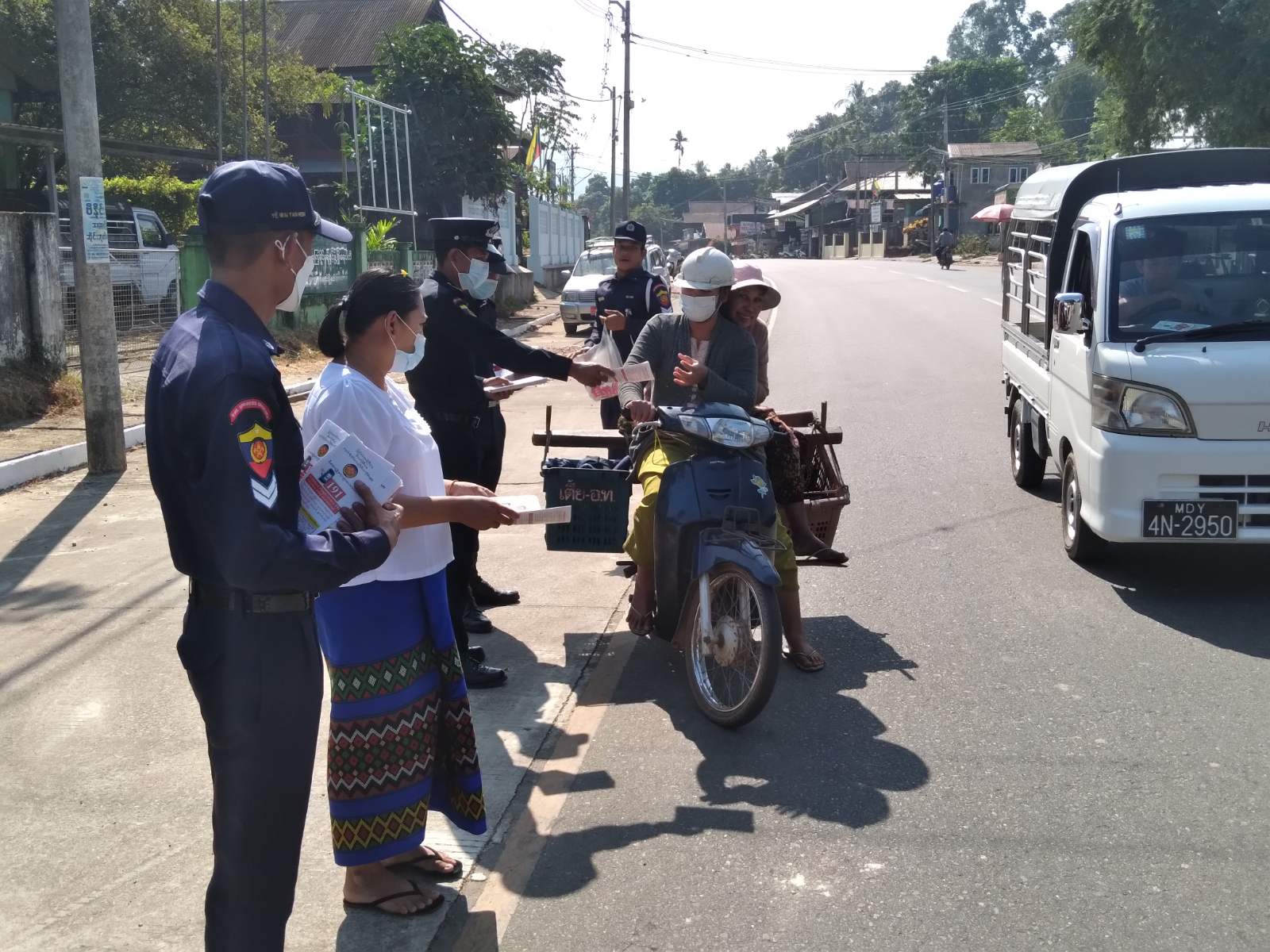 အဆိုပါ လက်ကမ်းစာစောင်ဖြန့်ဝေမှုတွင် မီးသတ်ဦးစီးဌာနမှ ဦးစီးအရာရှိ ဦးသက်နိုင်လွင်နှင့် ၀န်ထမ်းများက မီးဘေးလုံခြုံရေးအသိပညာပေးလက်ကမ်းများ (၆၀၀)စောင်၊ စတေကာအကြီး (၄၅၀)ခုနှင့် စတေကာအသေး(၂၇၀၀) စုစုပေါင်း(၃၇၅၀) ကို ဖြန့်ဝေခဲ့ကြောင်း သိရသည်။