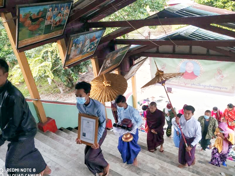 ကချင်ပြည်နယ်၊ မိုးညှင်းခရိုင်၊ ဖားကန့်မြို့နယ်၊ ကာမိုင်းမြို့ရှိ လင်းရောင်ခြည်စာသင်တိုက်တွင် သီတင်းသုံးတော်မူလျက်ရှိသော ကျောင်းထိုင်ဆရာတော် အရှင်ပညိဿရအား သာသနဓဇဓမ္မာစရိယဘွဲ့တံဆိပ်တော် ကပ်လှူဂုဏ်ပြုပူဇော်ပွဲအား ယနေ့နံနက် ၉ နာရီခန့်က ကာမိုင်းမြို့ မြစိမ်းရောင်ရပ်ကွက်ရှိ လင်းရောင်ခြည်ကျောင်းတိုက်တွင် ကျင်းပခဲ့သည်။