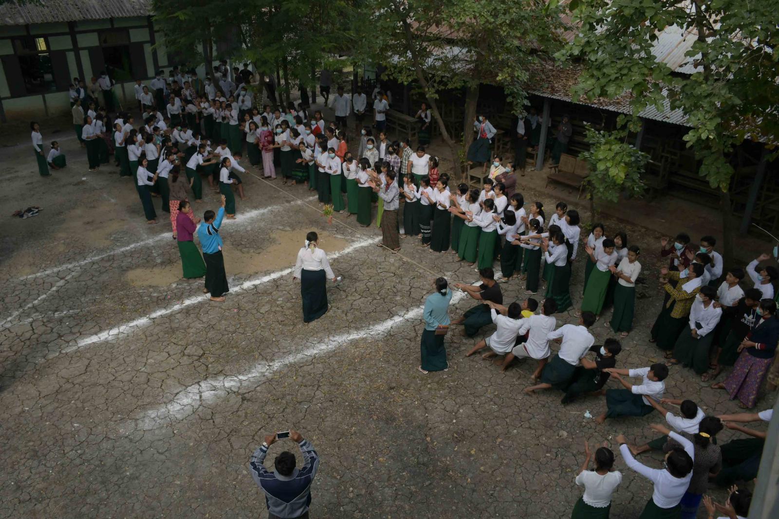 ၇၄နှစ်မြောက် လွတ်လပ်ရေးနေ့အကြို ကျောင်းတွင်းအားကစားပြိုင်ပွဲတွင် အလယ်တန်းနှင့် အထက်တန်းအဆင့်အမျိုးသား/အမျိုးသမီး လွန်ဆွဲပြိုင်ပွဲတွင် မြို့နယ်အဆင့်နှင့် ကျောင်းတွင်းအဆင့် နှစ်မျိုးခွဲ၍ ကျင်းပခဲ့ပြီး၊ တာတိုအပြေးပြိုင်ပွဲတွင် မူလတန်းအဆင့်နှင့် အလယ်တန်းအဆင့် တို့ကို ကျင်းပပြုလုပ်ခဲ့ရာ မြို့နယ်စီမံအုပ်ချုပ်ရေးအဖွဲ့ဥက္ကဋ္ဌ ဦးအောင်သူရသိန်းနှင့် အဖွဲ့ဝင်များ၊ ကျောင်းအုပ်ဆရာမကြီးနှင့် ဆရာ/ဆရာမများ၊ ကျောင်းသား/ကျောင်းသူများမှ ကြည့်ရှုအားပေးခဲ့ကြသည်။